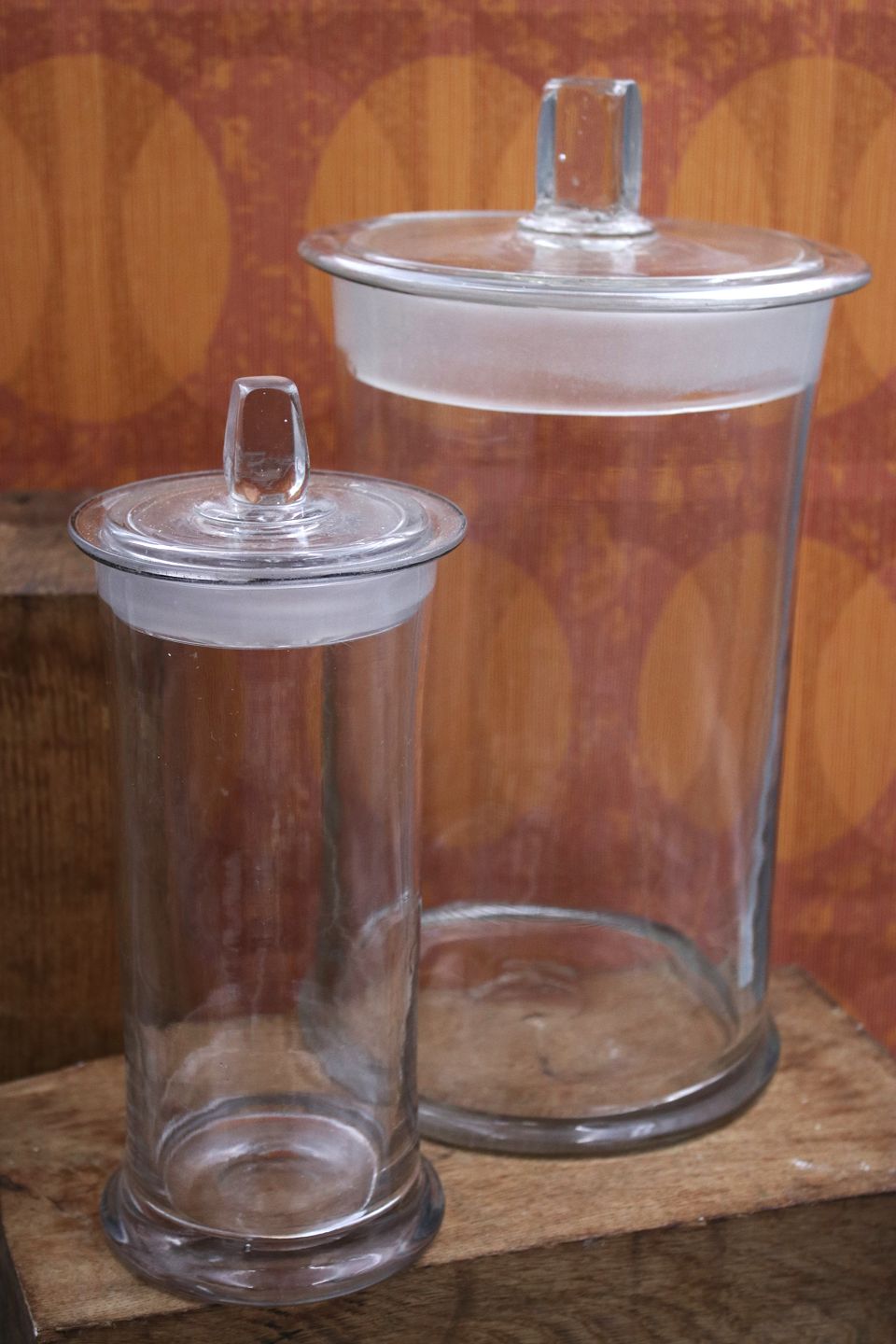 Antikke franske bolsjeglas “pot á bonbon” i mundblæst glas