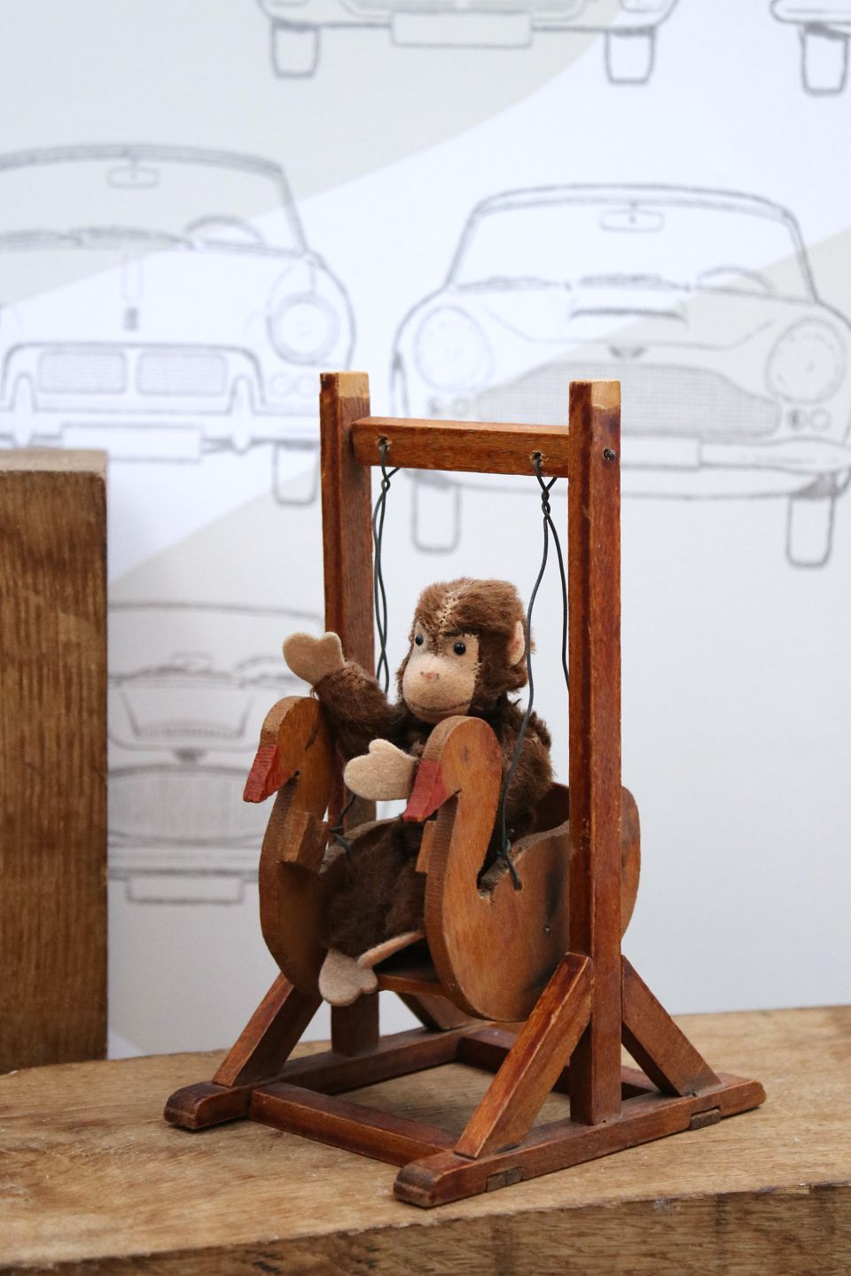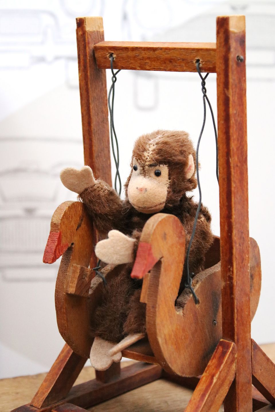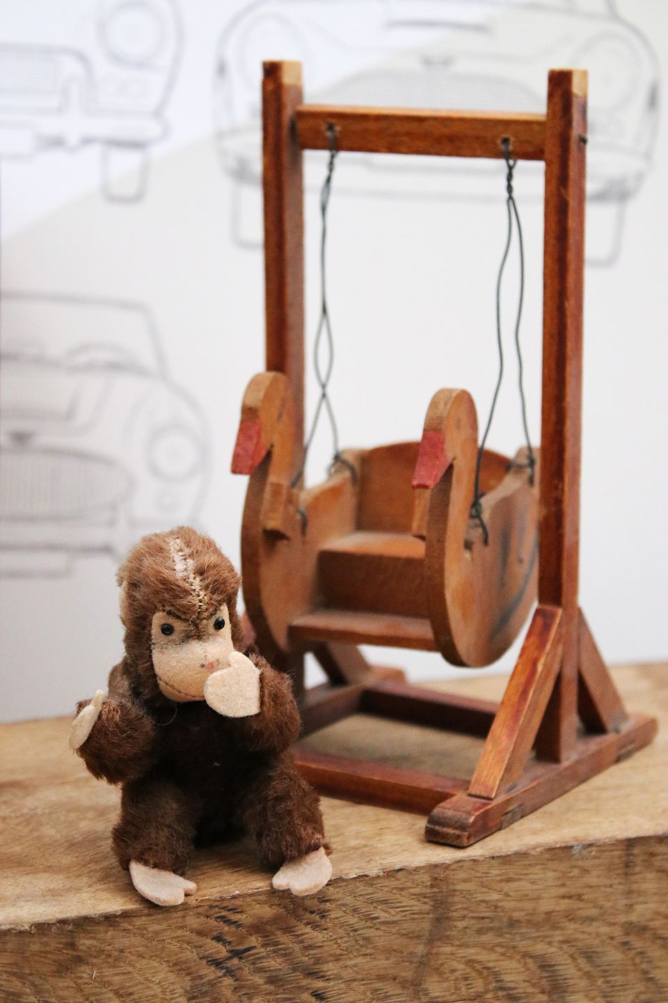 Gynge H: 18,5cm. 12x9cm. Abe H: 11cm.