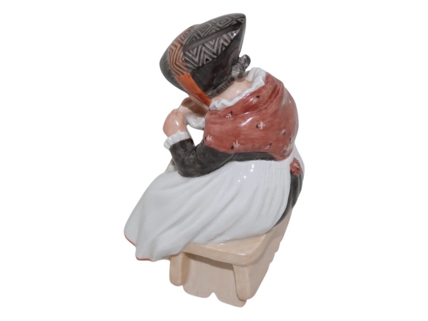 Royal Copenhagen figur, Amagerpige med overglasur dekoration.