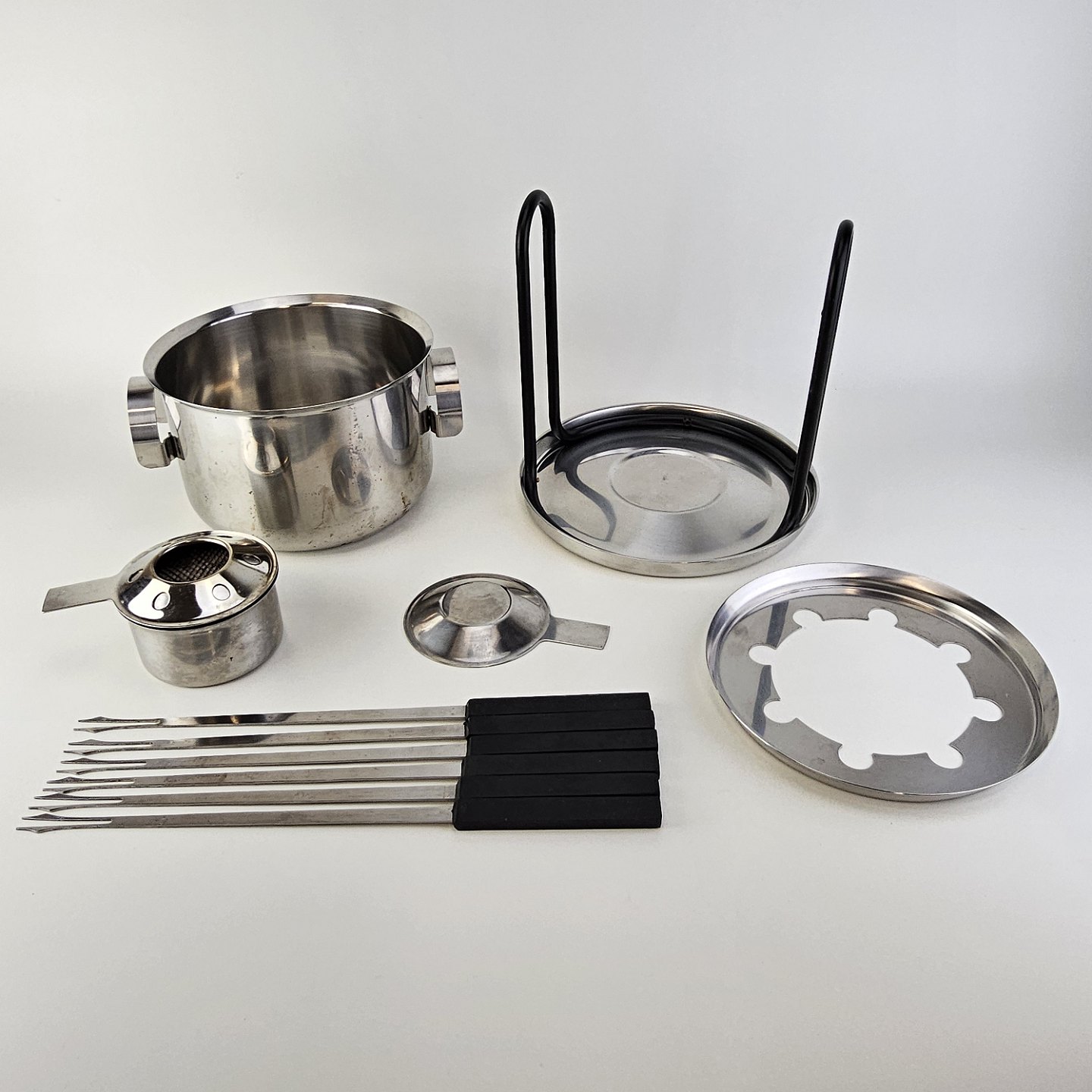 Stelton fonduesæt i rustfrit stål inklusiv stander, brænder, gryde og seks fondue gafler
