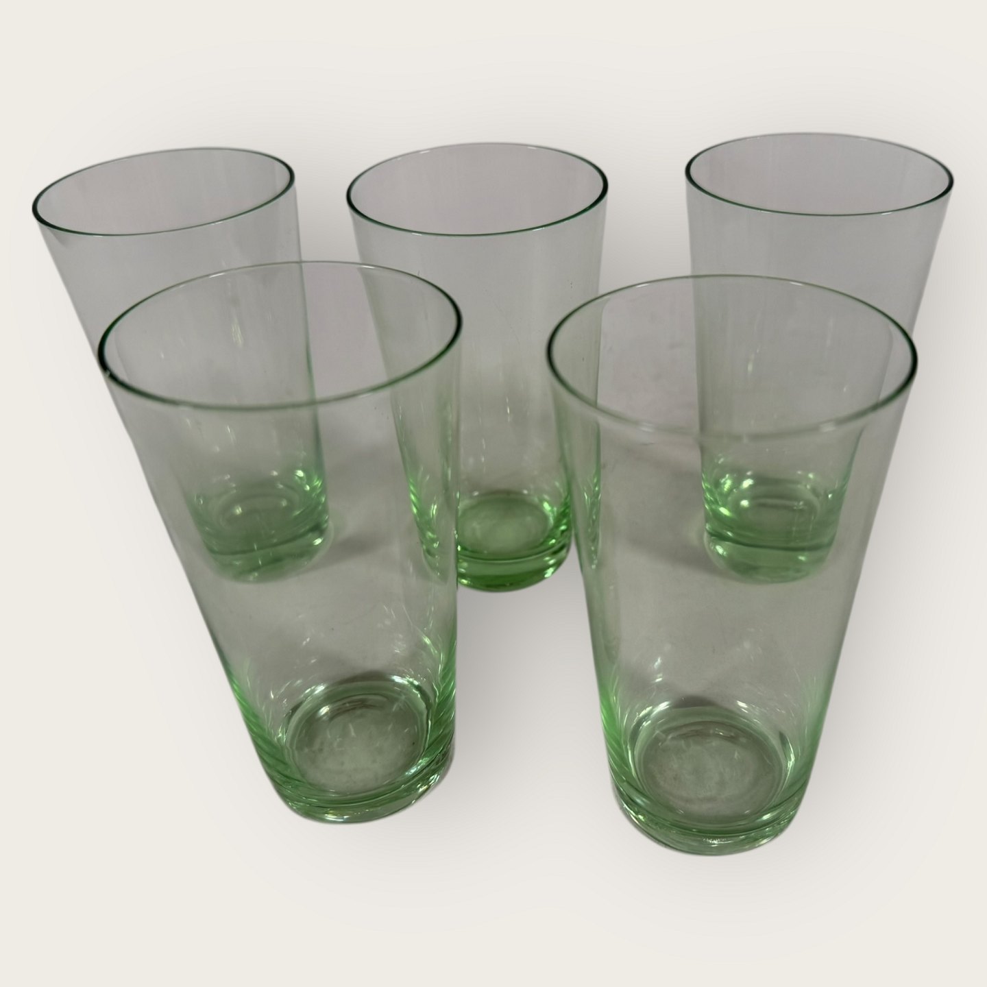 Grønne sodavandsglas, 10cm høje, diameter 5cm *Fin stand*