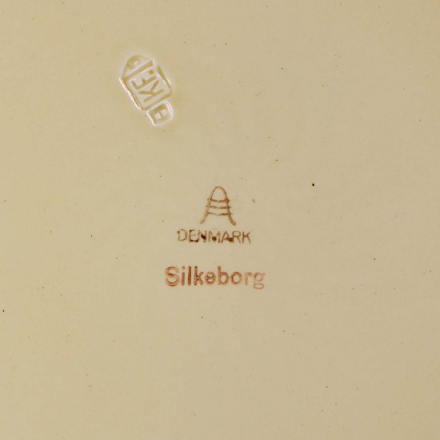 Rundt serveringsfad i fajance fra stellet Silkeborg fremstillet i perioden 1937-1939