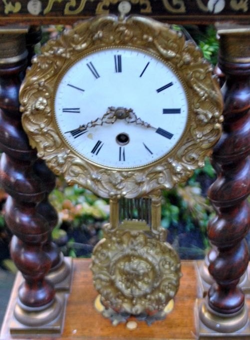 Søjleur i ibenholt træ, messing og med intarsia, ca. 1830. Frankrig.