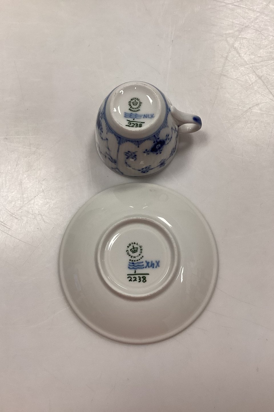 Royal Copenhagen Musselmalet Riflet Hotel Kaffekop med underkop No. 2238.