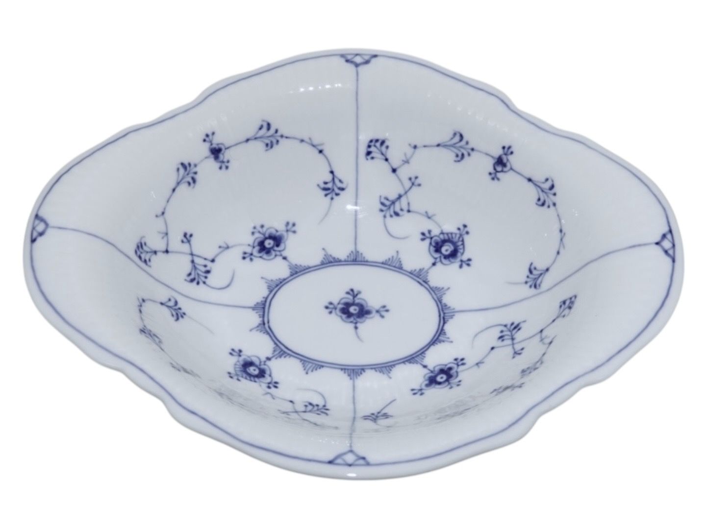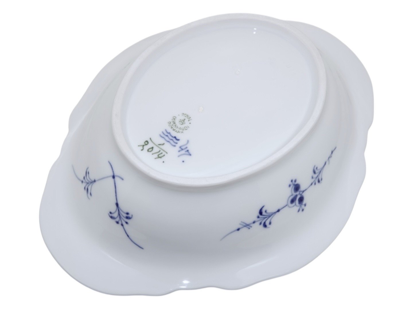 Royal Copenhagen Musselmalet Riflet, stor og sjælden oval skål.