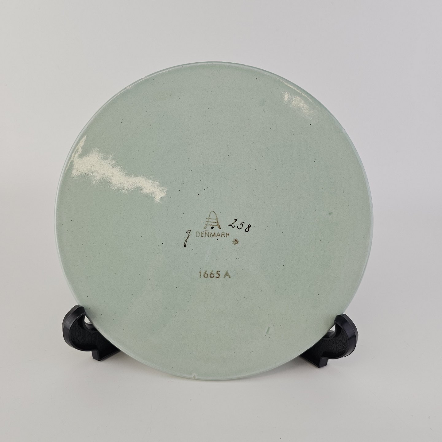 Stel i lysegrøn fajance med natur dekoration og flettet kant
