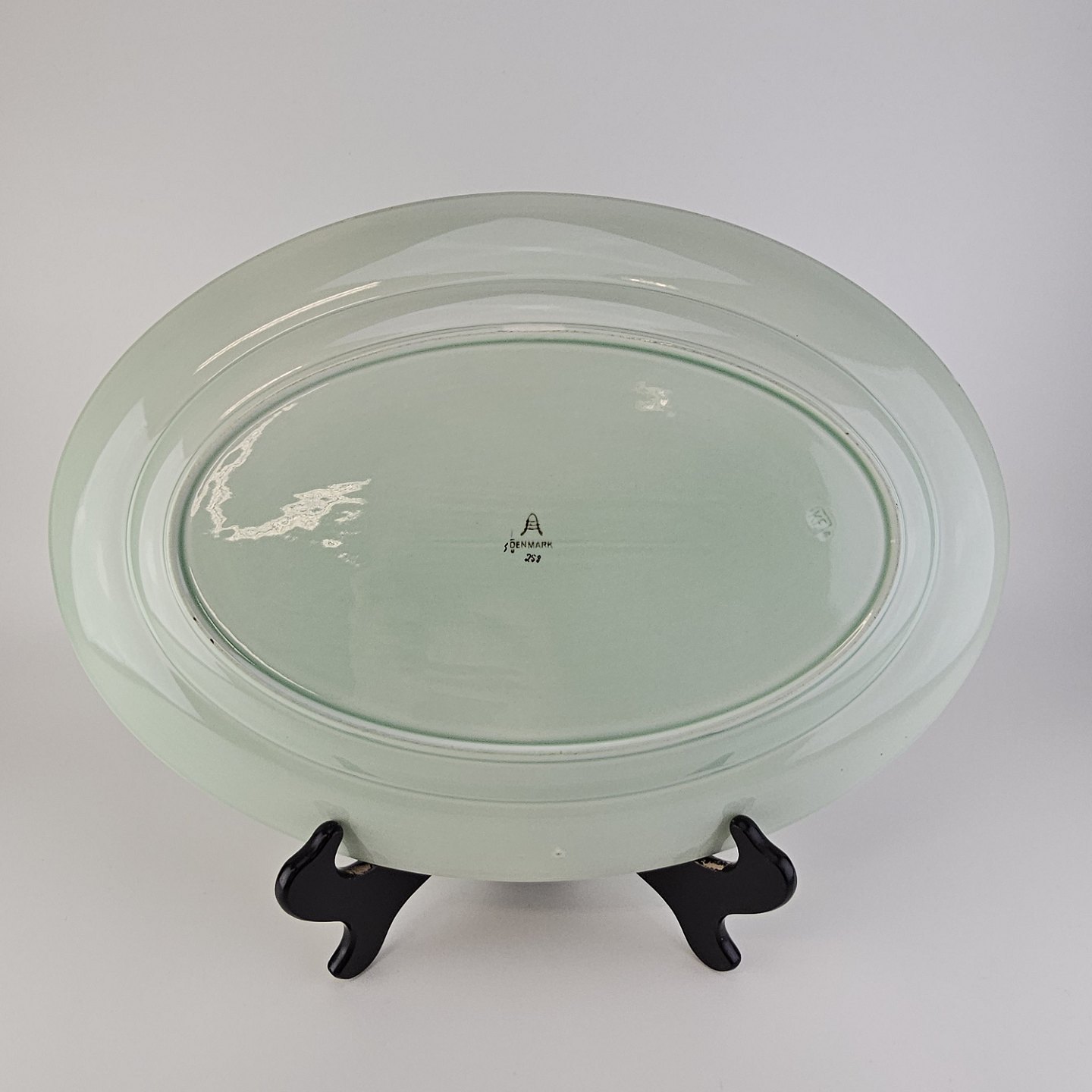 Stel i lysegrøn fajance med natur dekoration og flettet kant