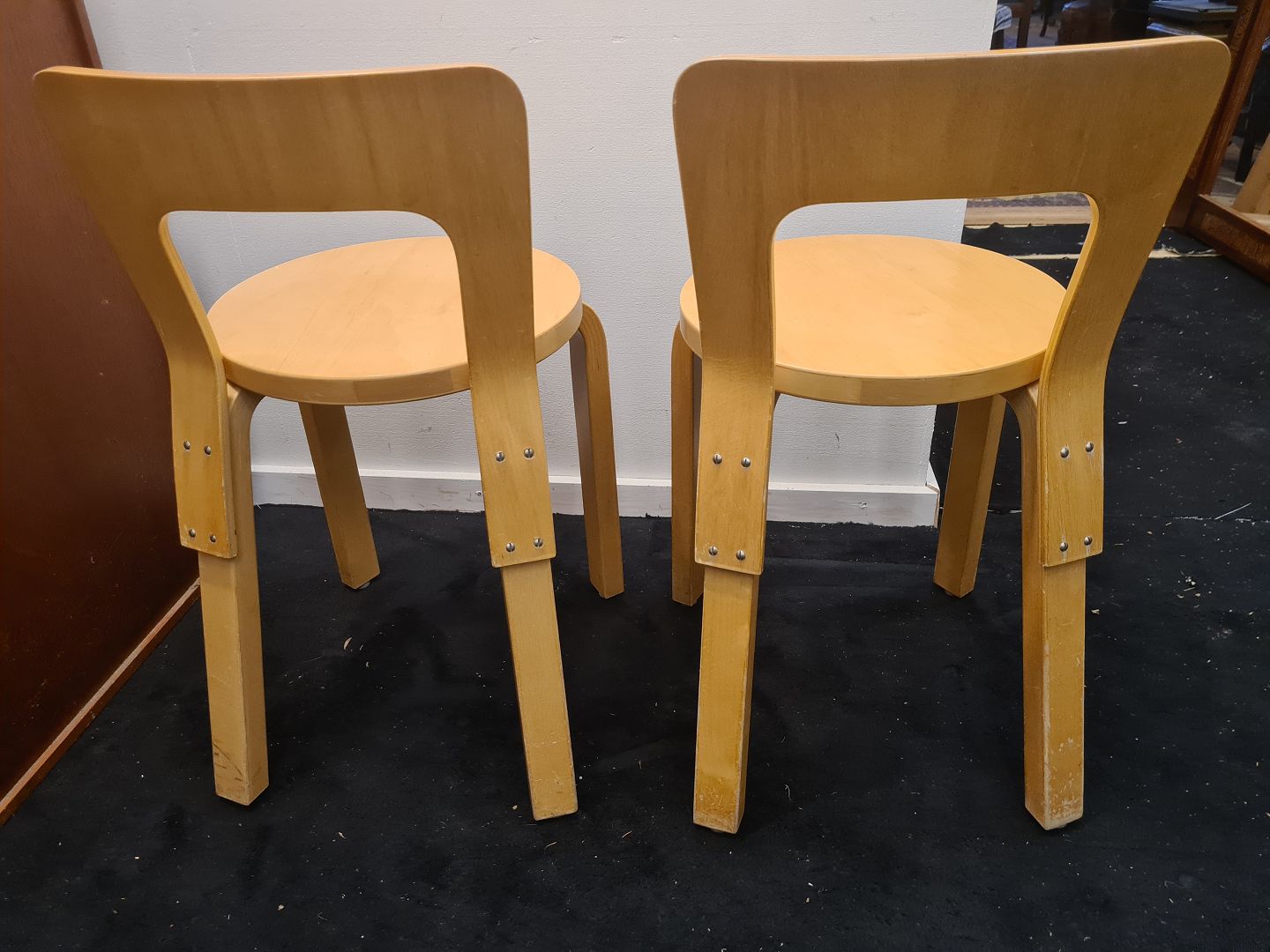Par Alvar Aalto stole model 65 i bøg. Fremstår pæne og stabile uden de store brugsspor.