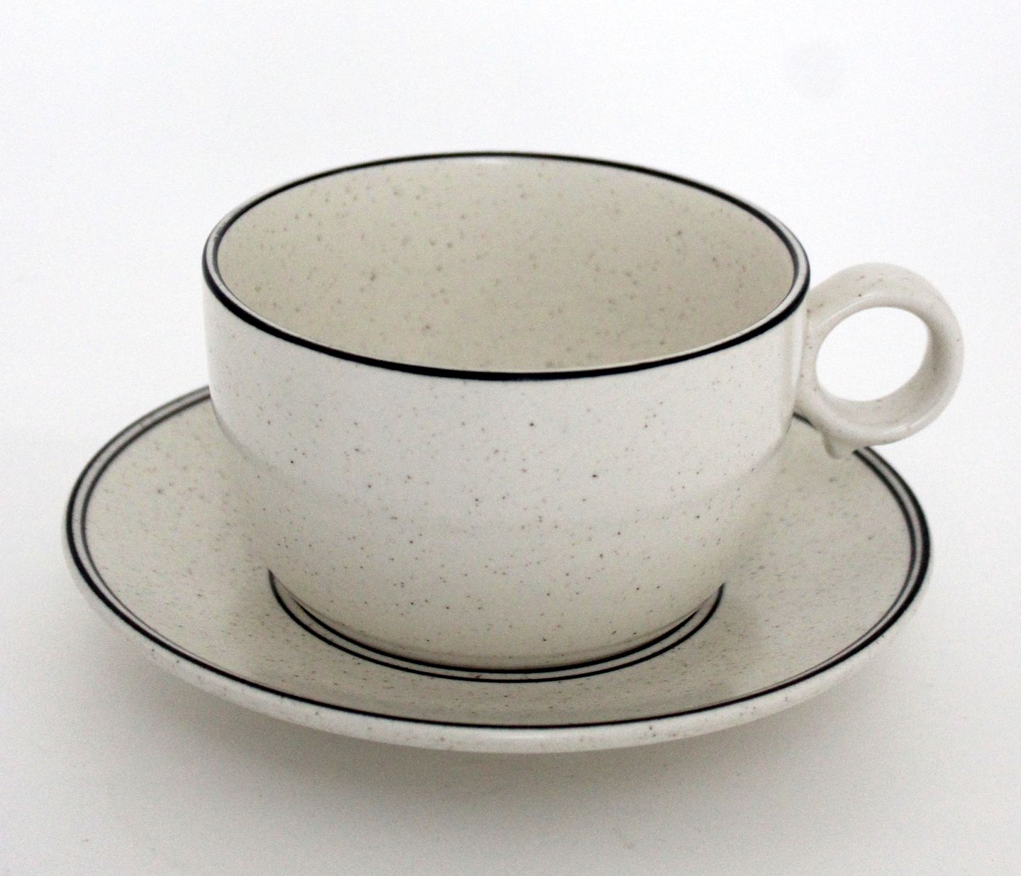 Gustavsberg senere Arabia, Birka, Tekop med underkop. Designet af Stig Lindberg. Produceret i perioden 1973-1987. Mærke: Gustavsberg Stengods VDN S555 Sweden, owen, table, dishwater. Mærke: Arabia Finland.