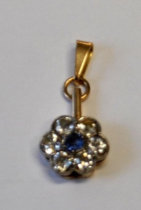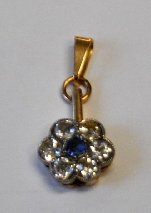 14 karat guld vedhæng med 6 gamle diamanter og en safir, 20. årh.