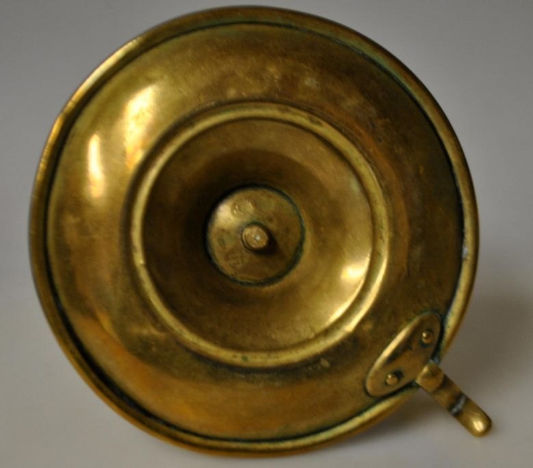 Kammerstage i messing, 1848 - 1863. Kobbermøllen, Flensborg. Med håndtag. Stemplet i under bund med kong Frederik VII's monogram (1848 - 1863). H.: 14 cm.