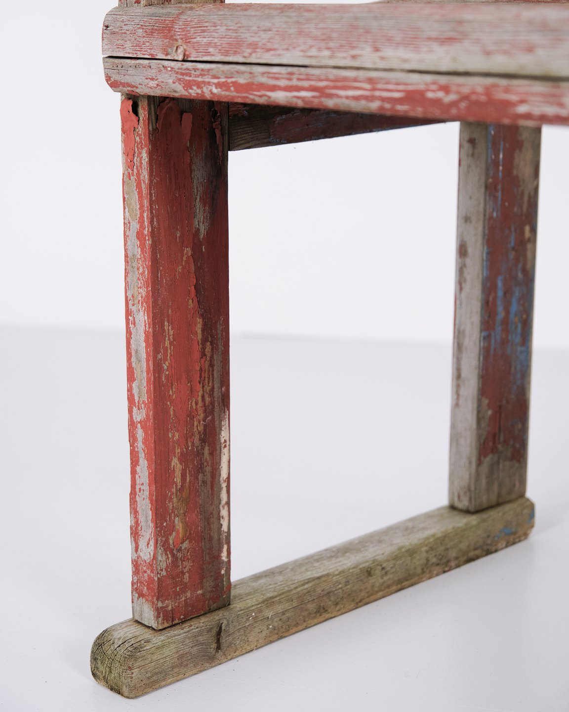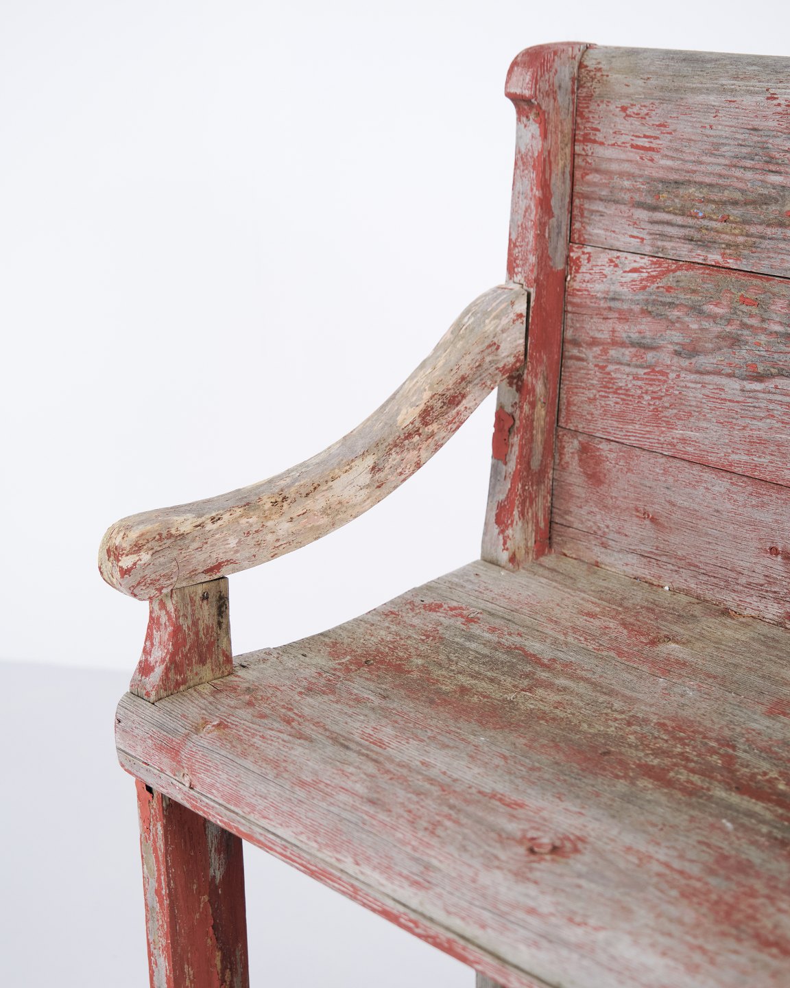 Antik bænk fra 1860’erne i original rødmalet fyrretræ. Antik rødmalet bænk 1800-tallet.