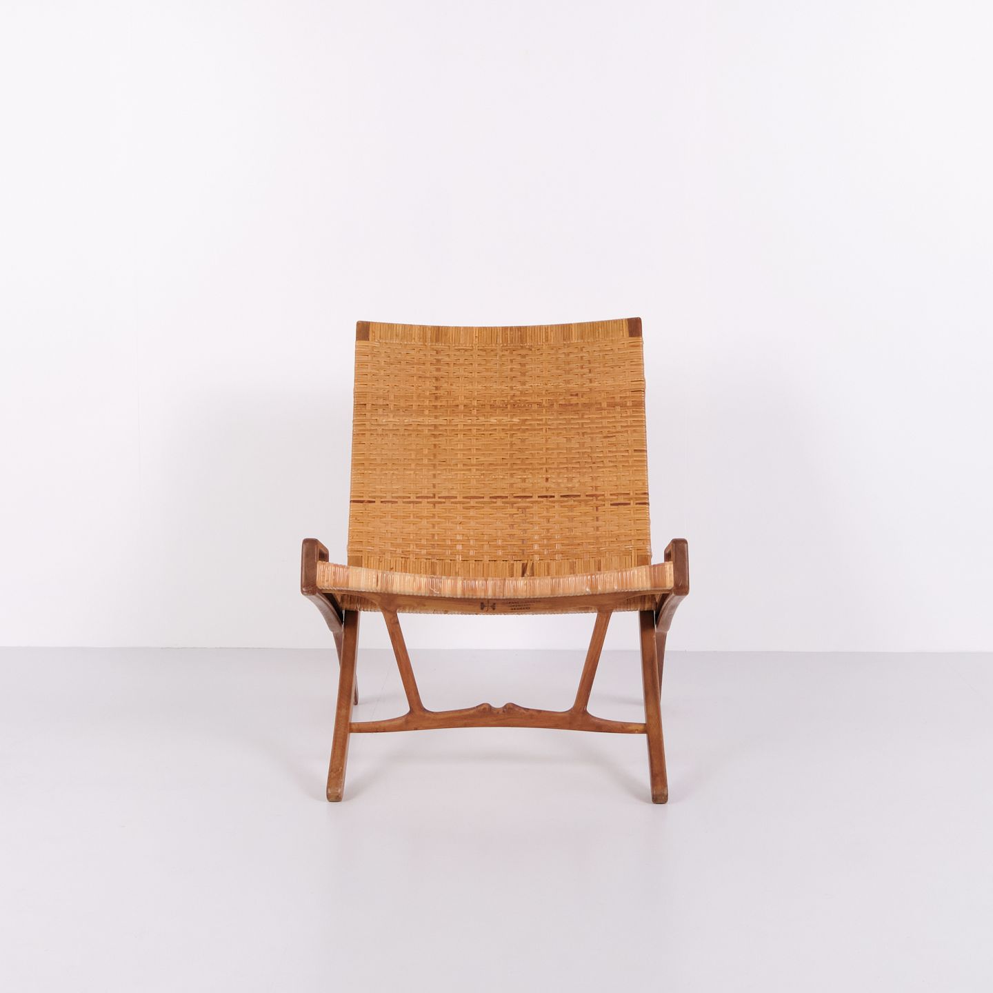Wegner JH512 Kaminstolen af Johannes Hansen i patineret egetræ med originalt flet og producentstempel. Dansk design 1950’erne.