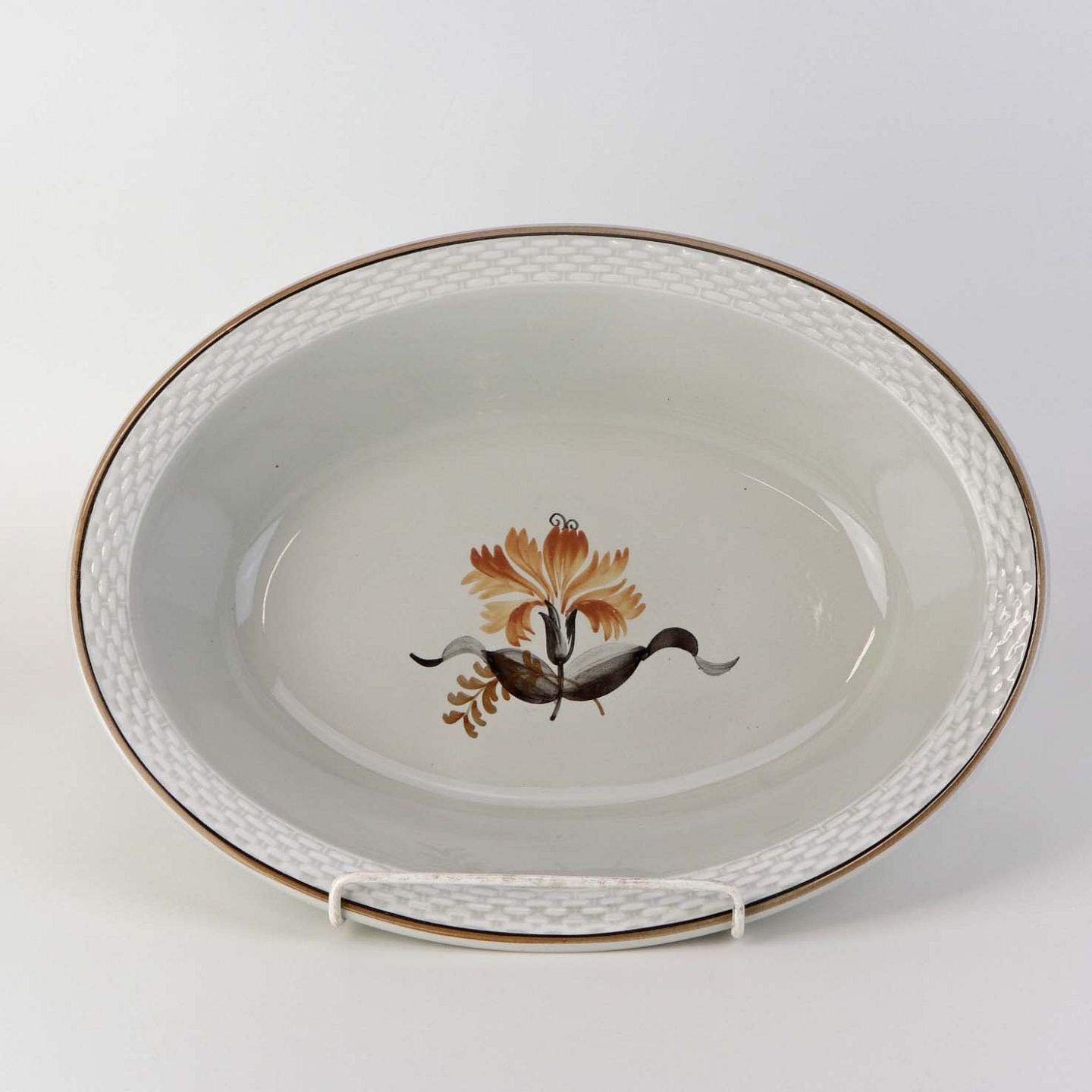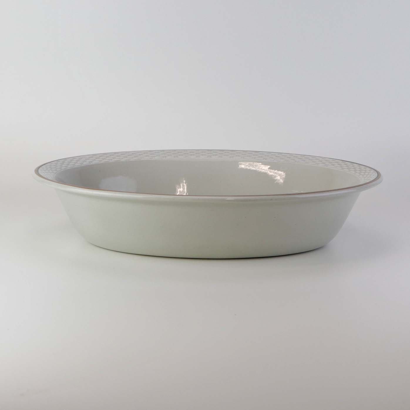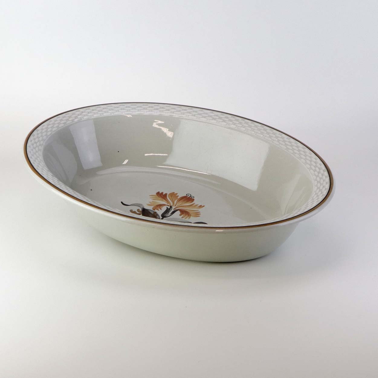 Oval serveringsskål i fajance fra stellet Kirsten, som blev fremstillet i perioden 1934-1957. Nr. 263