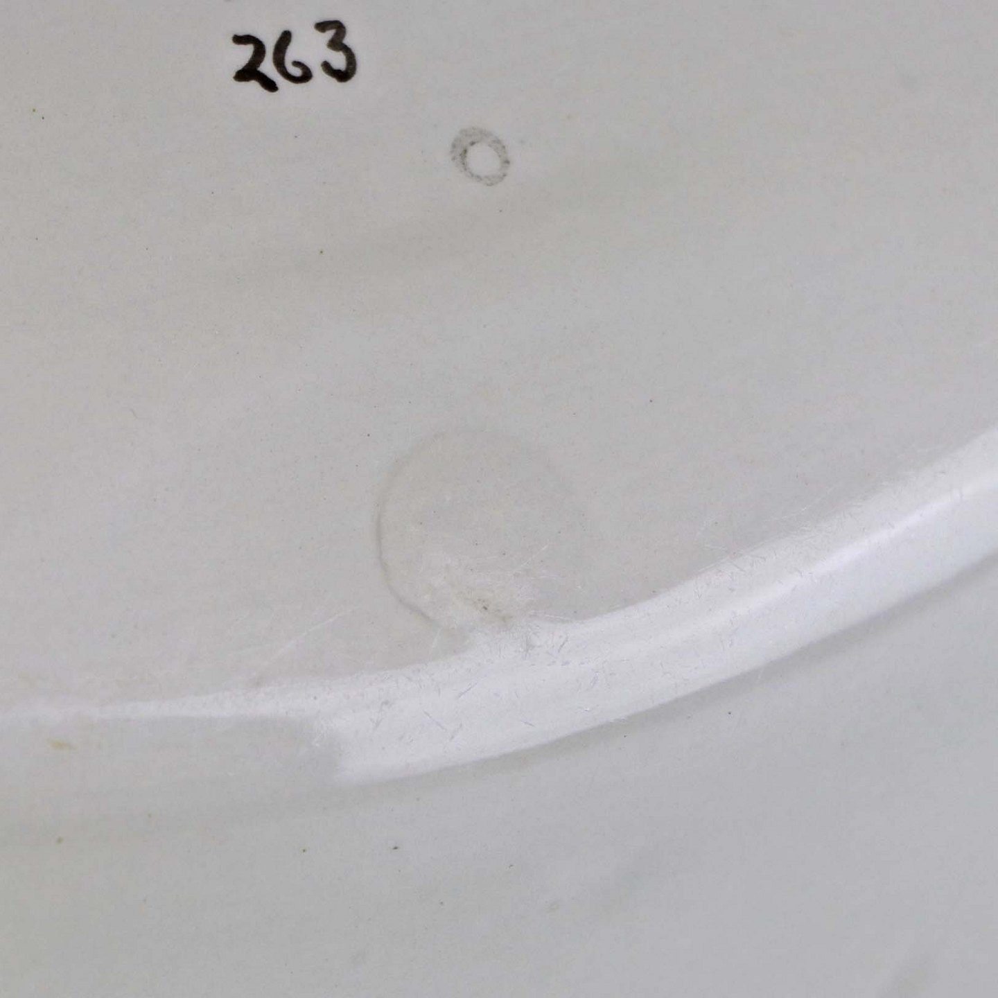 Fremstår med sorte nister under glasuren og ujævnheder i glasuren.