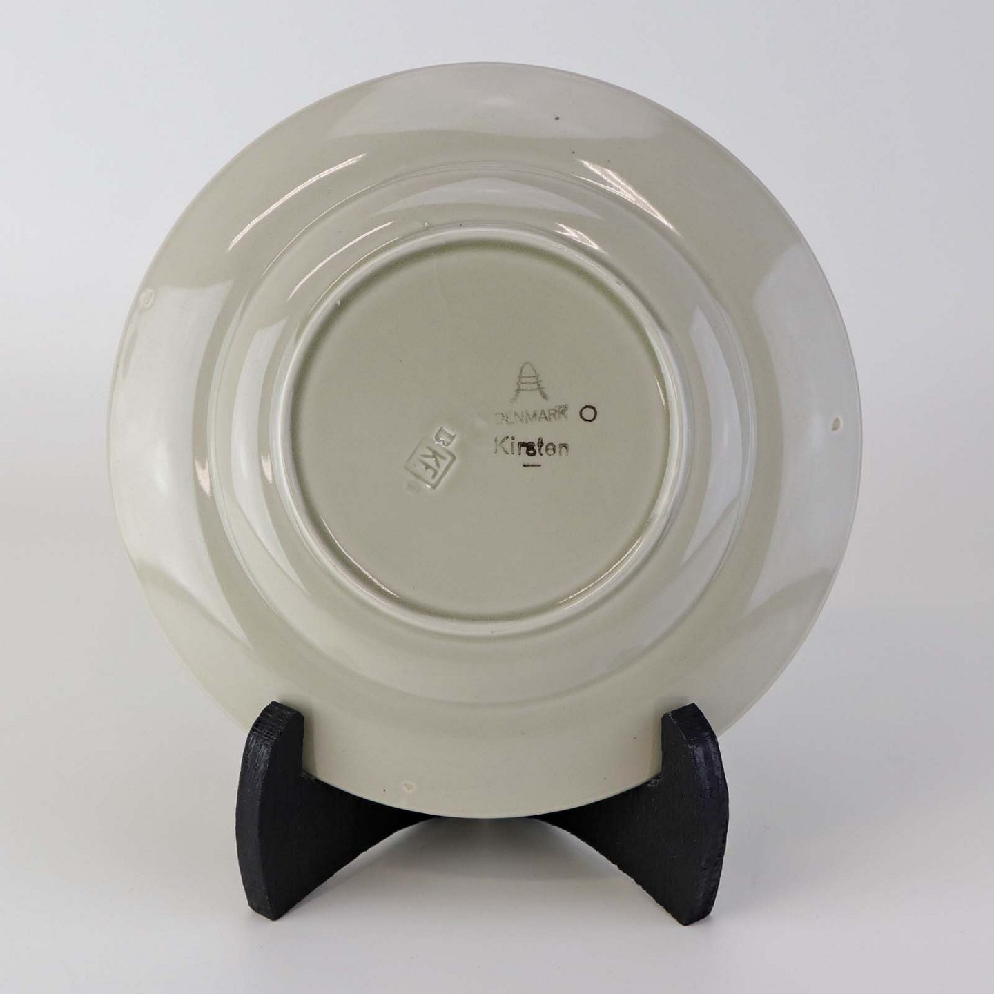 Desserttallerken i fajance fra stellet Kirsten, som blev fremstillet i perioden 1934-1957.