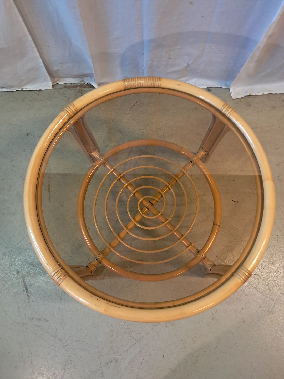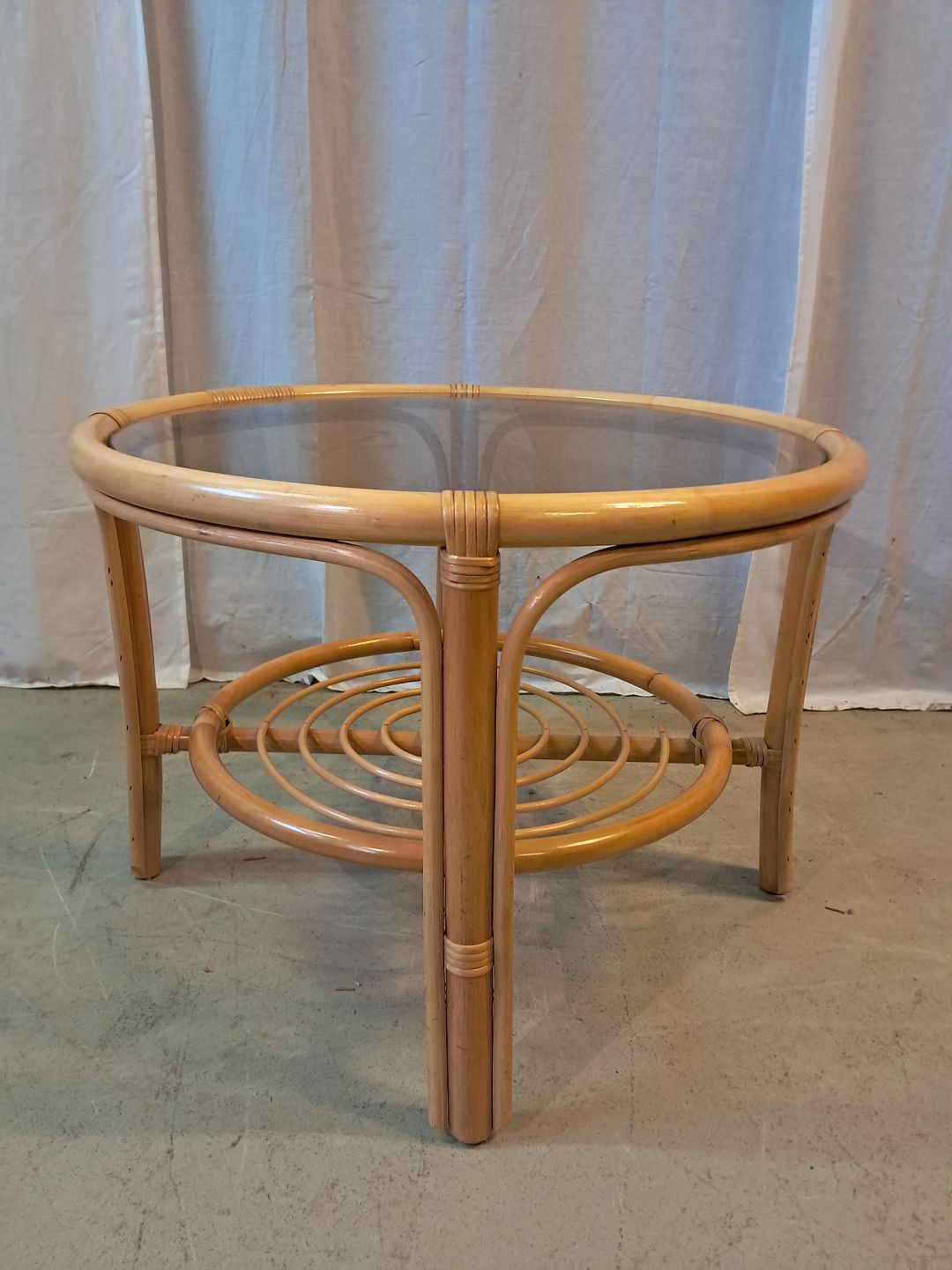 Sofabord i bambus med glasplade, fra 1990erne.