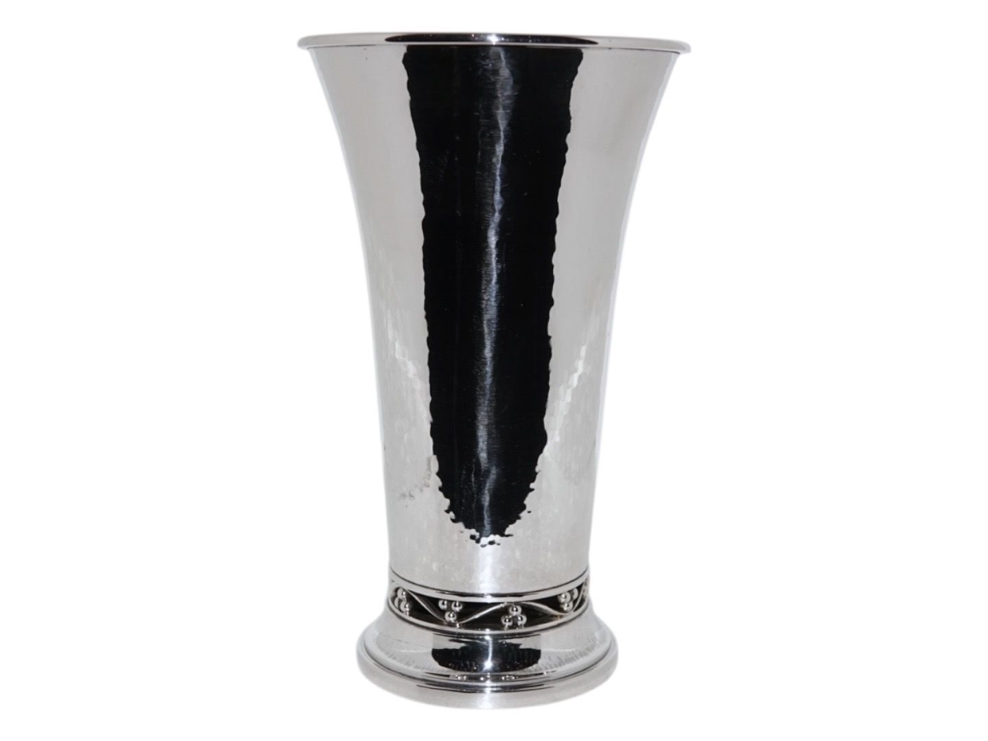 Georg Jensen hammerslået sterlingsølv, vase med gennembrudt bundkant af Harald Nielsen.