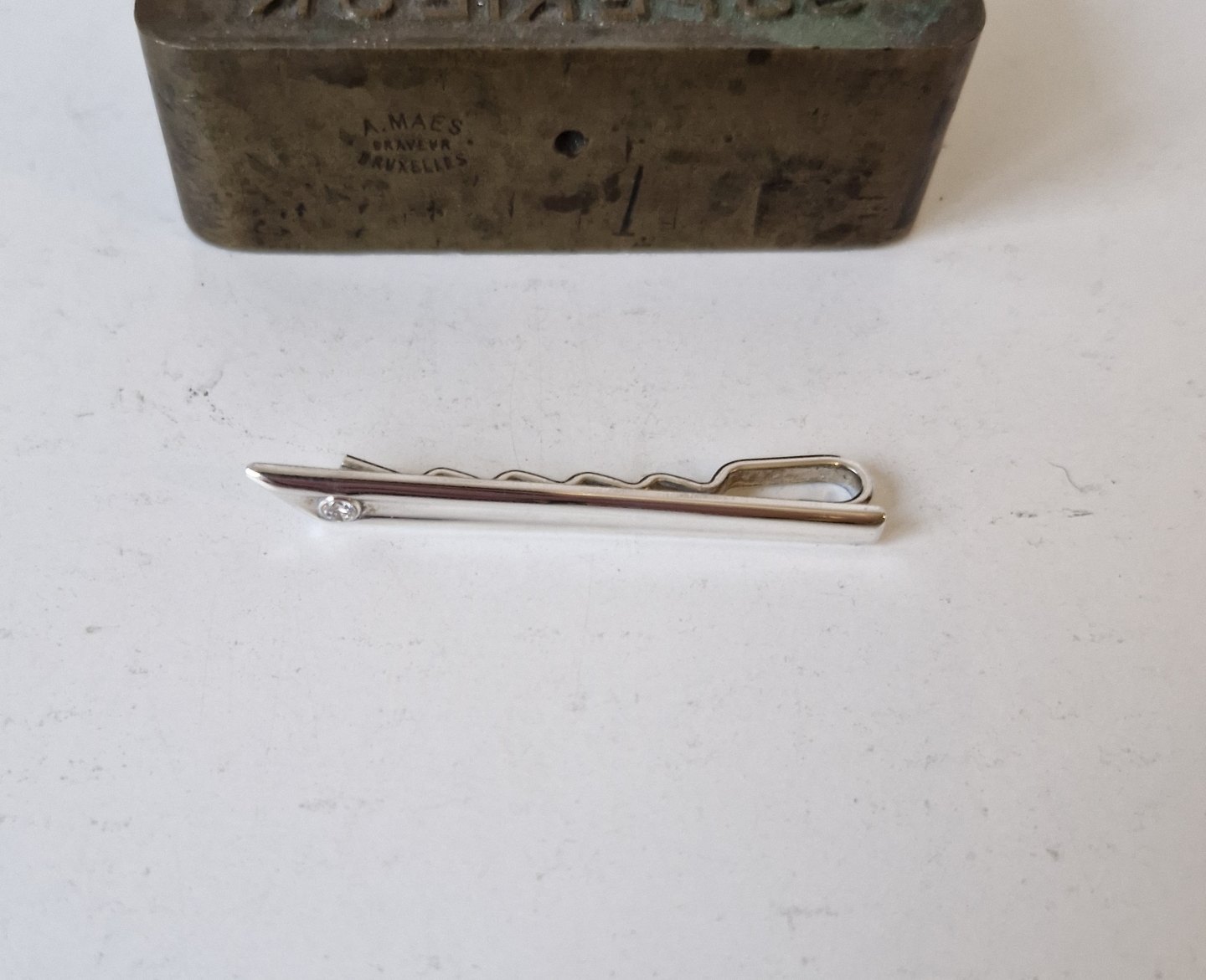 Slipsenål i sterlingsølv med klar sten