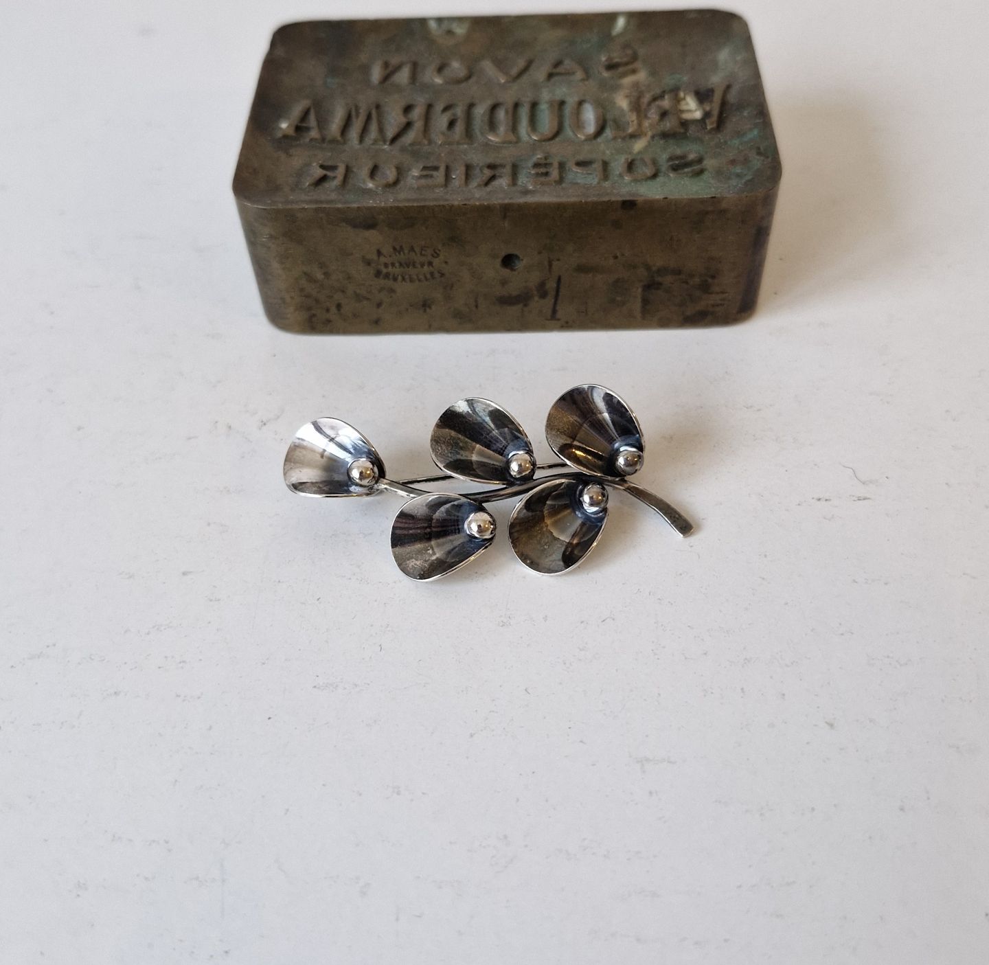 N.E.From vintage broche i sterlingsølv i form af gren med blade |