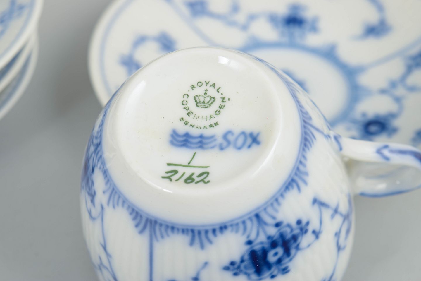 Royal Copenhagen, Musselmalet Riflet, kaffestel til 4 personer.