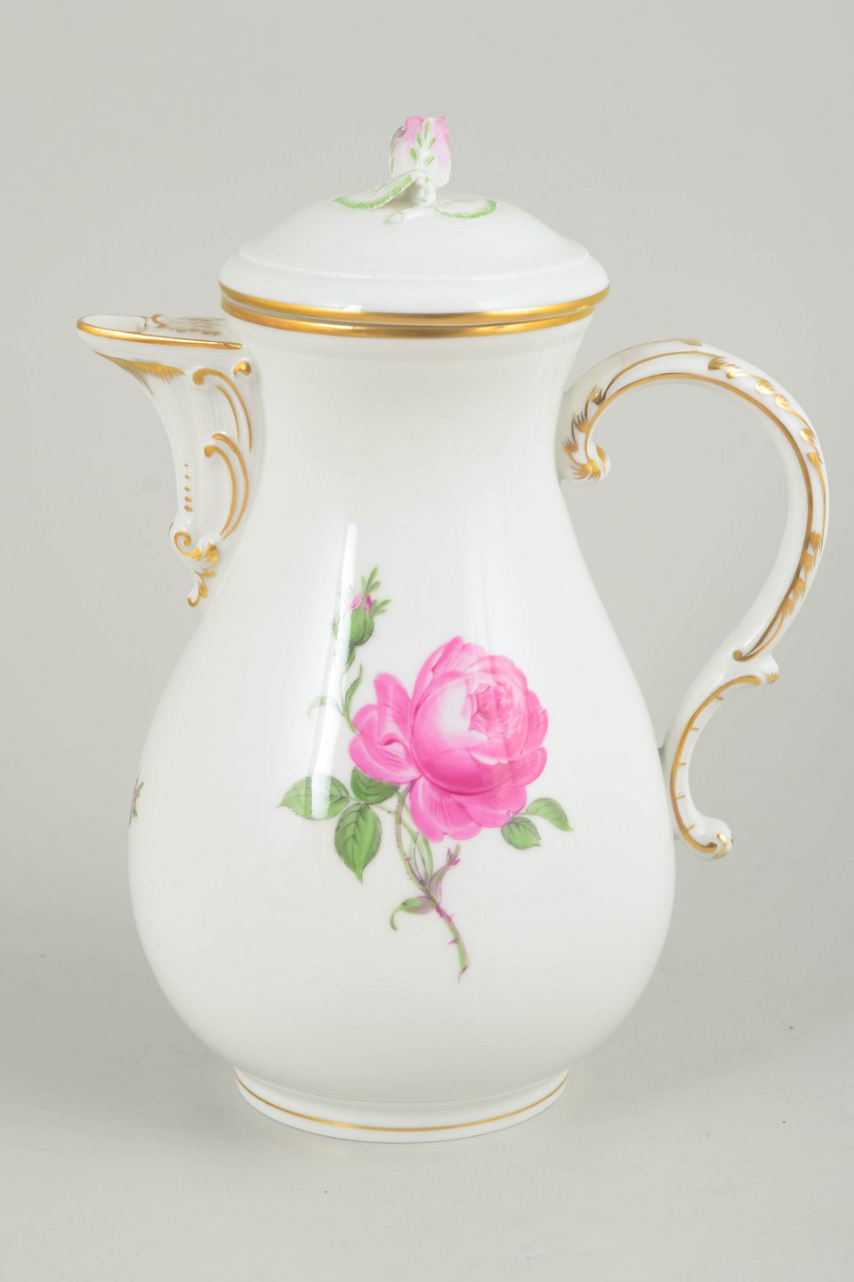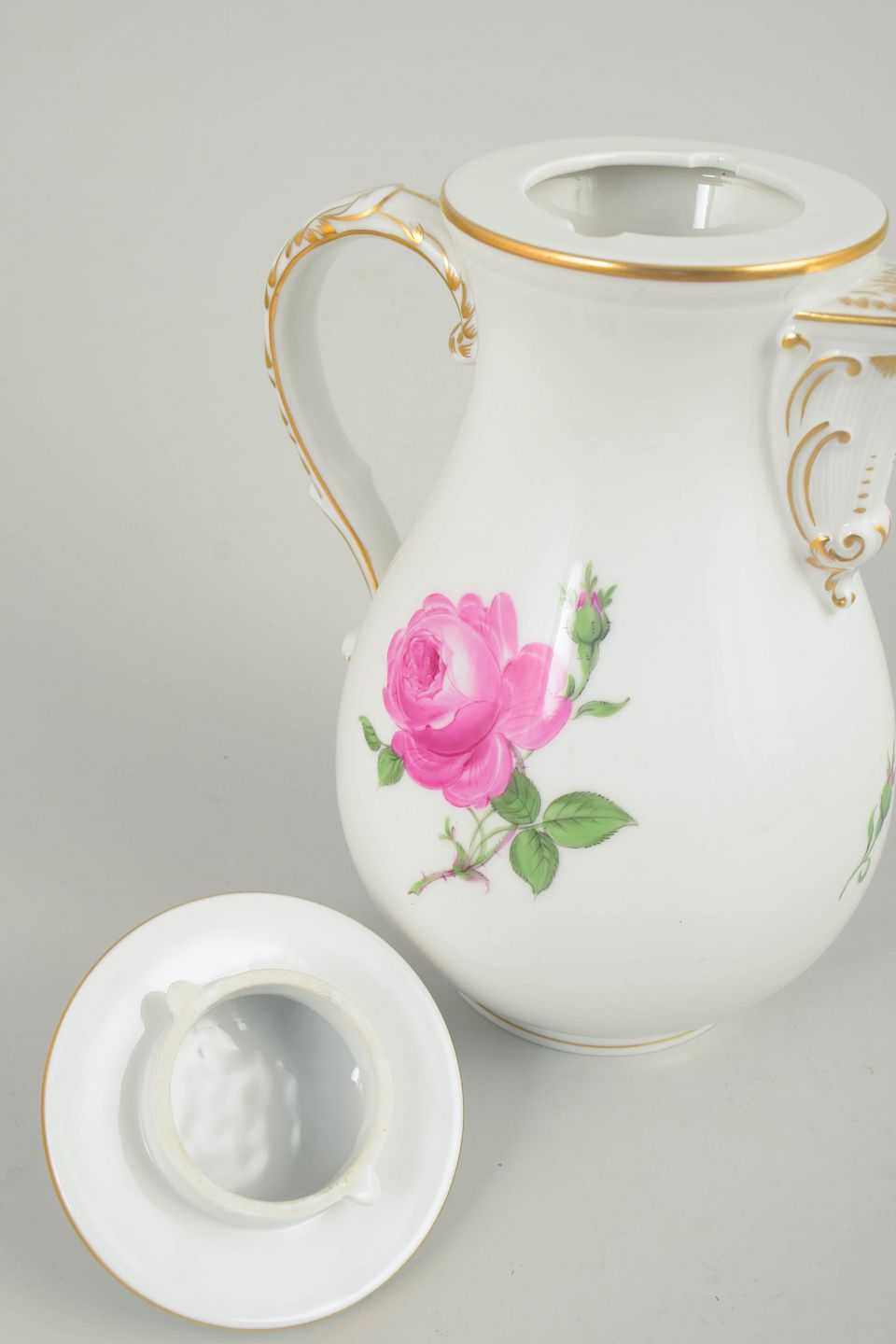 Meissen, kaffekande med låg, serien Pink flower.