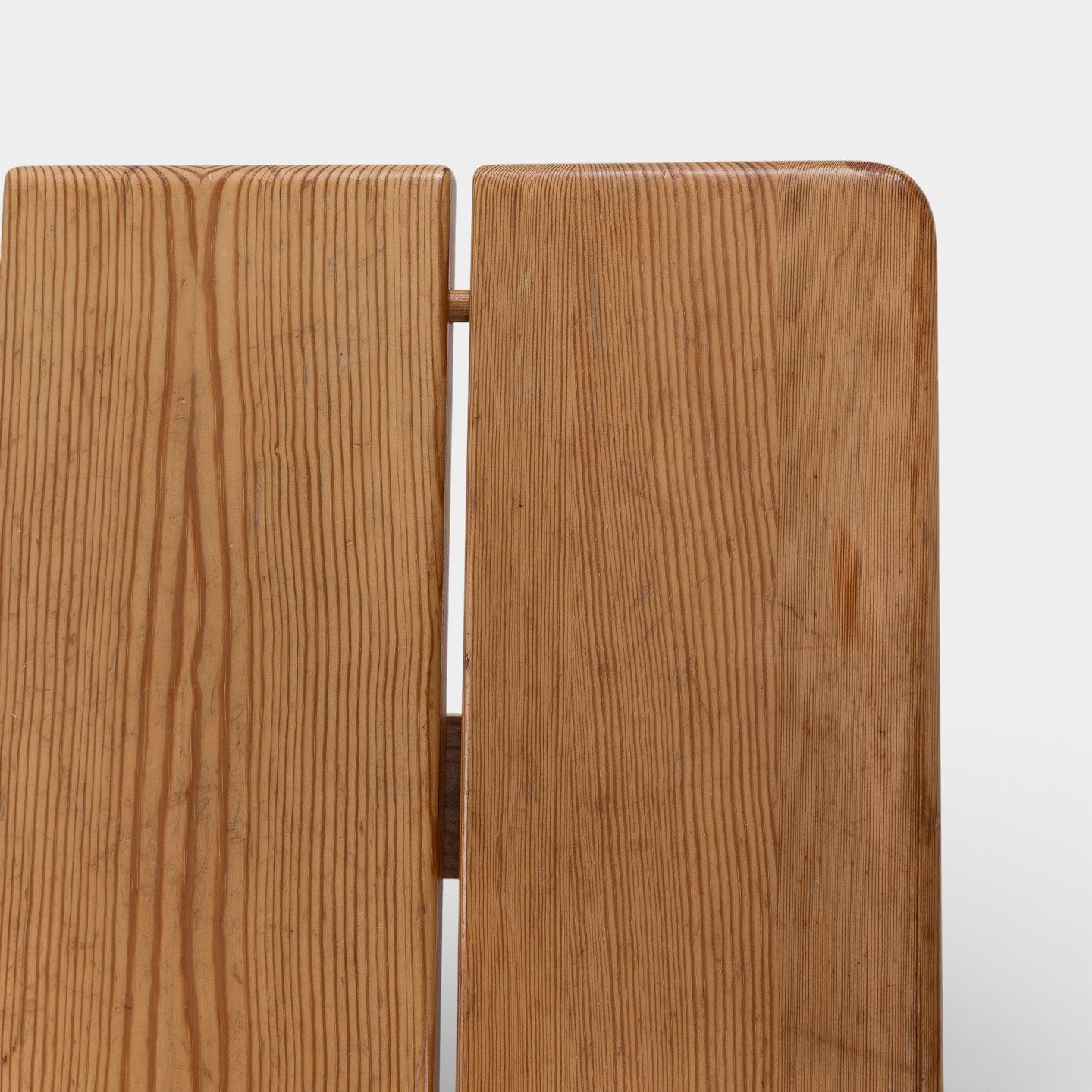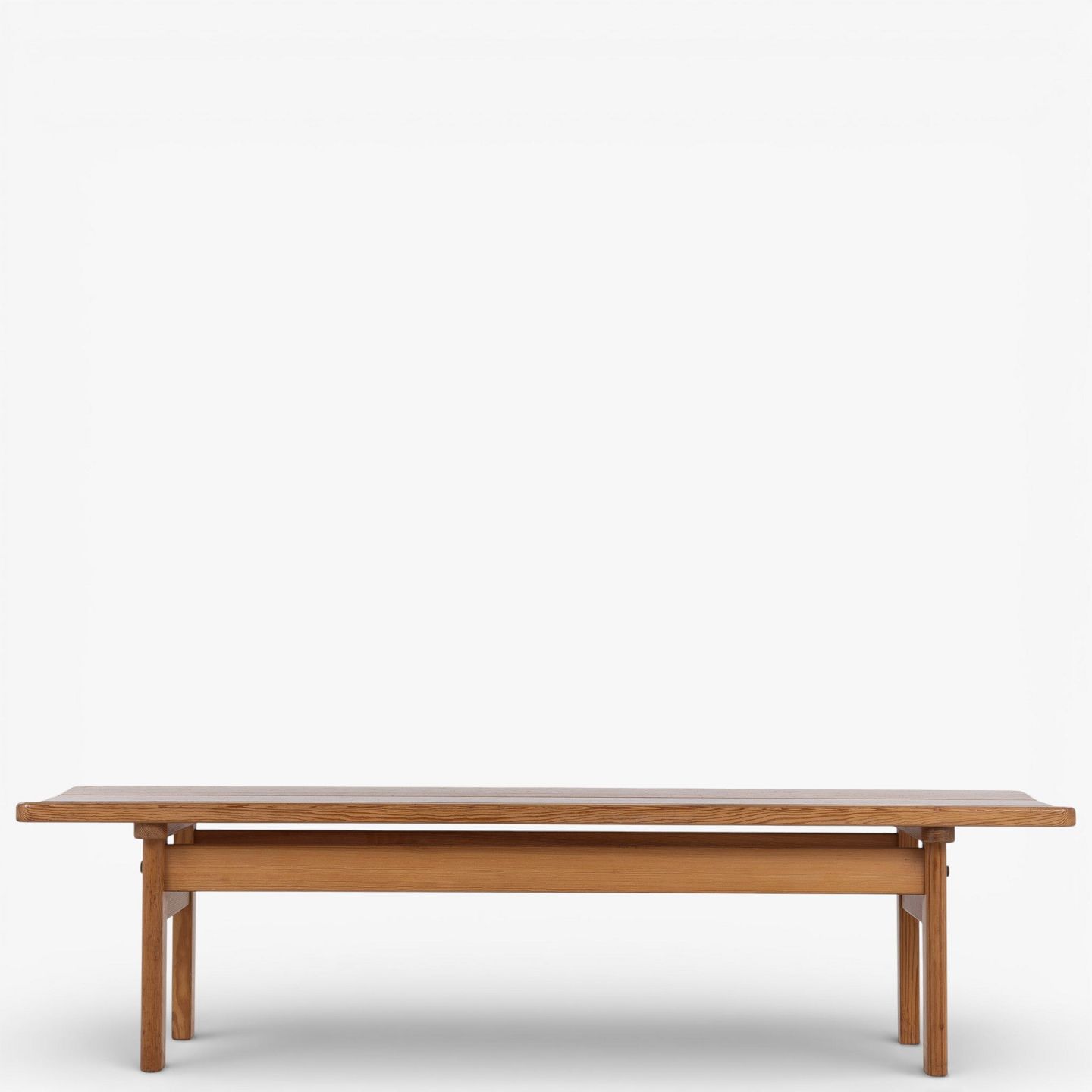 Bænk i massiv, lakeret fyrretræ. Mærket fra producent.