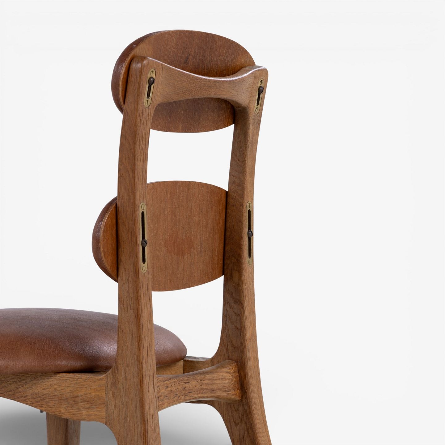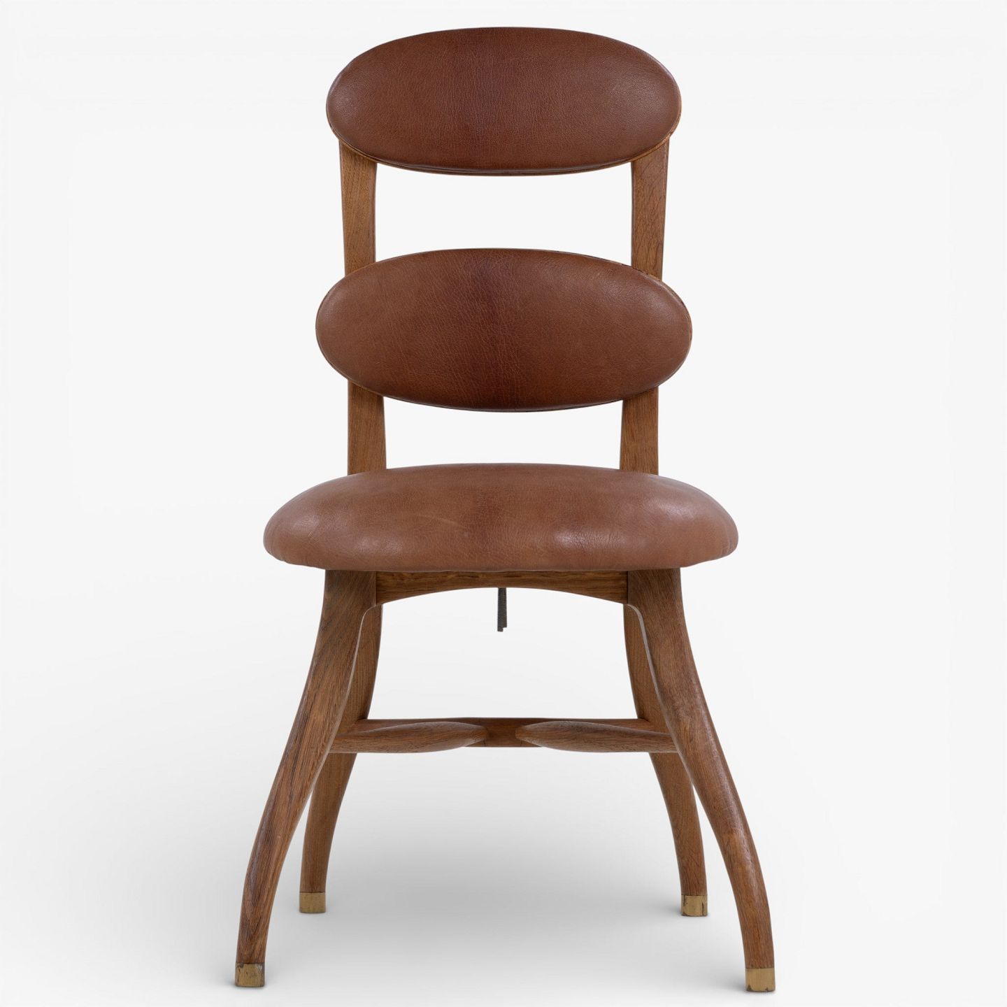 'Musikerstol' med stel i patineret egetræ og justerbart sæde og ryg i patineret nigerskind. Formgivet i 1942.