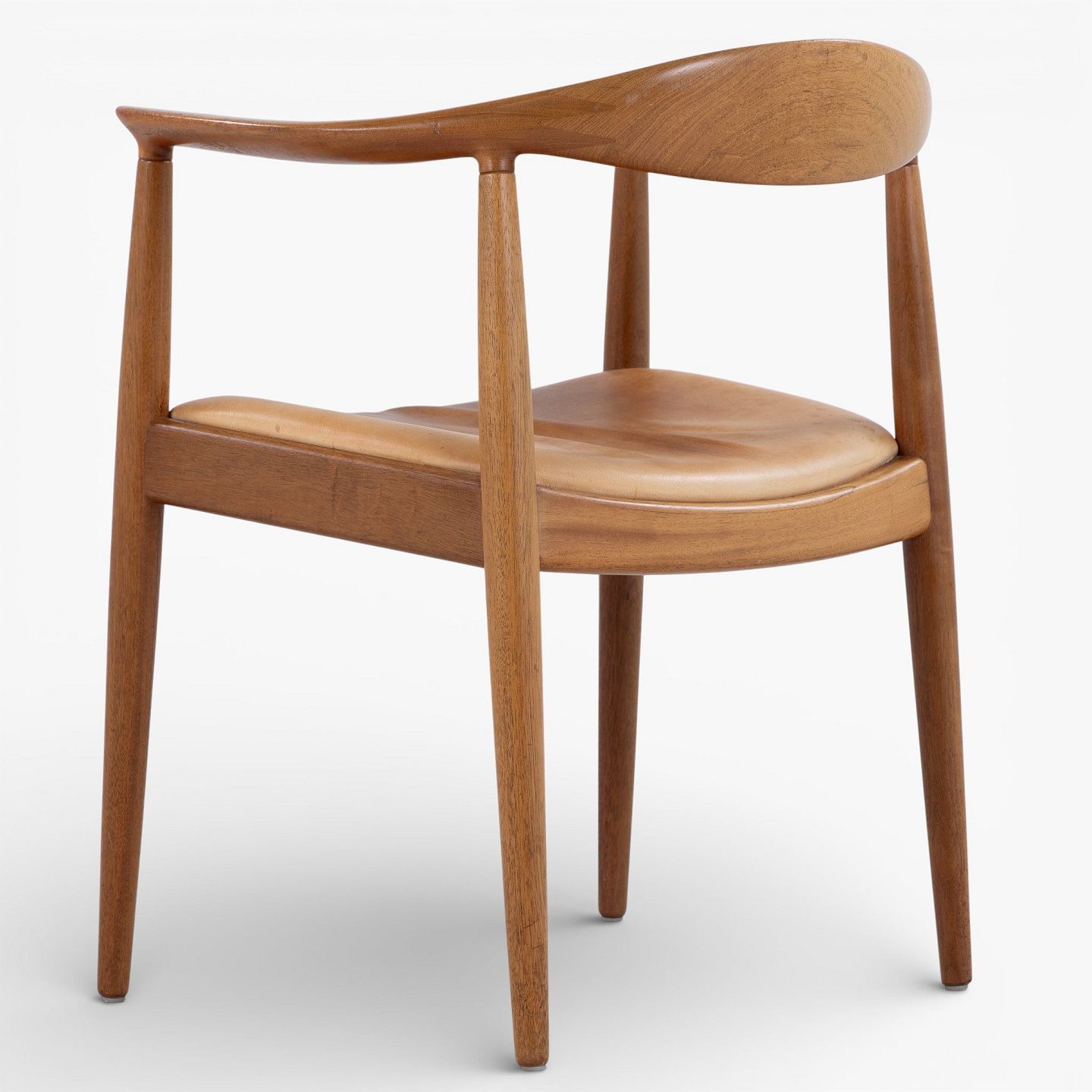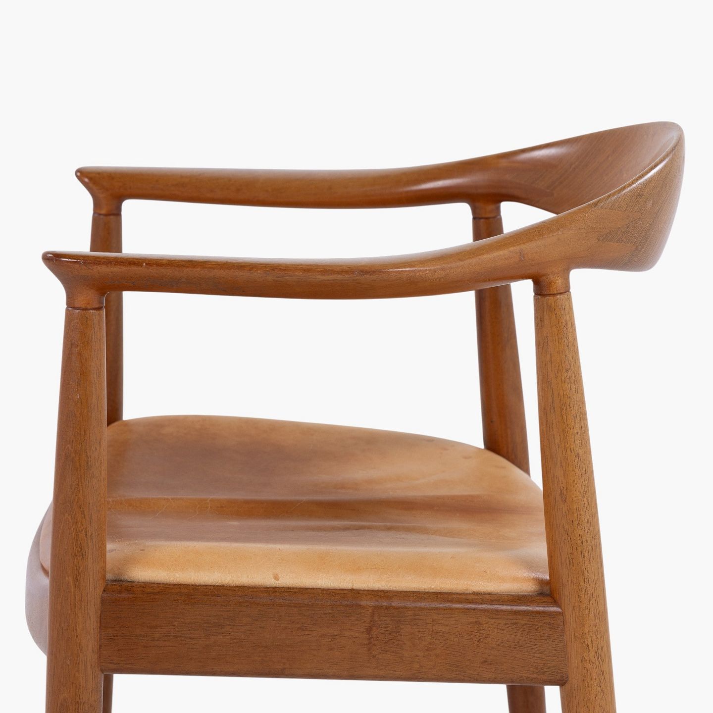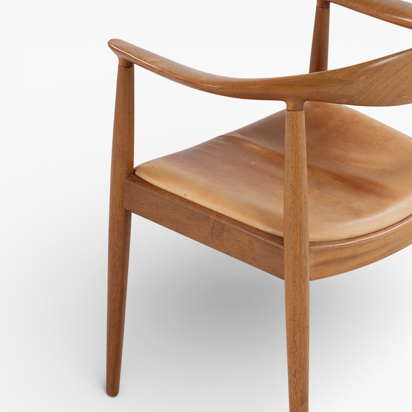 JH 503 - 'The Chair'-armstol i mahogni med sæde i patineret naturlæder. Mærket fra producent.