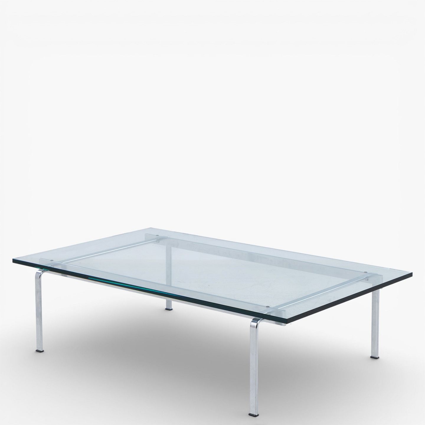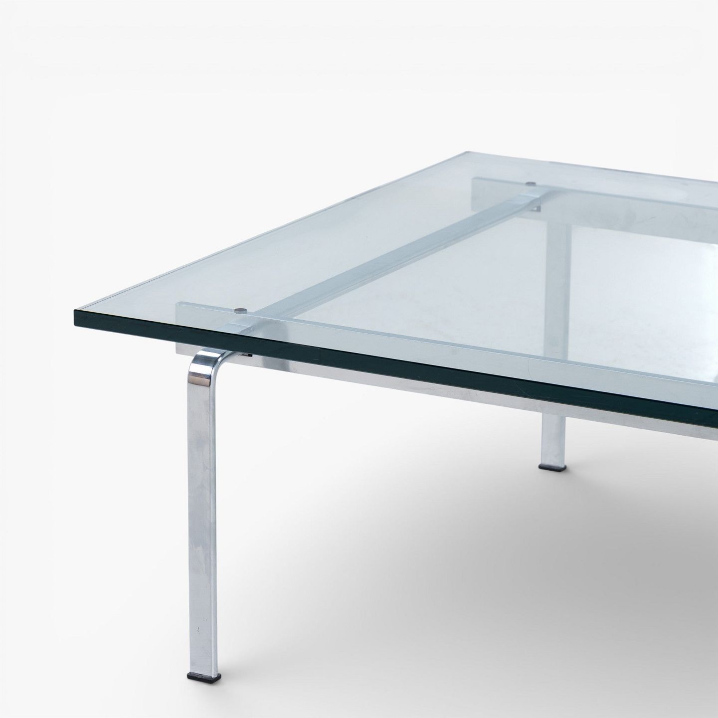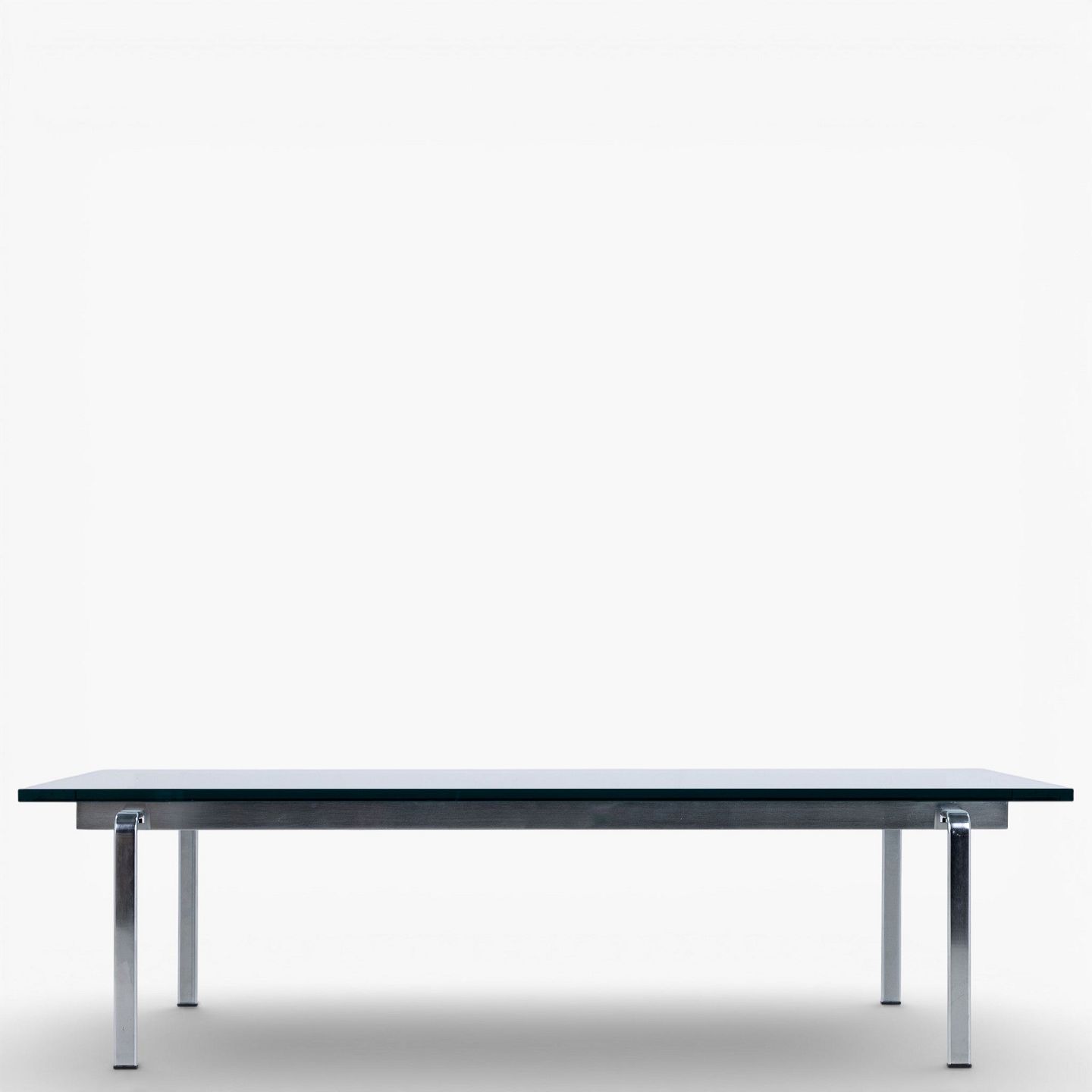 FK 91 - Sofabord med stel i stål og plade i glas.