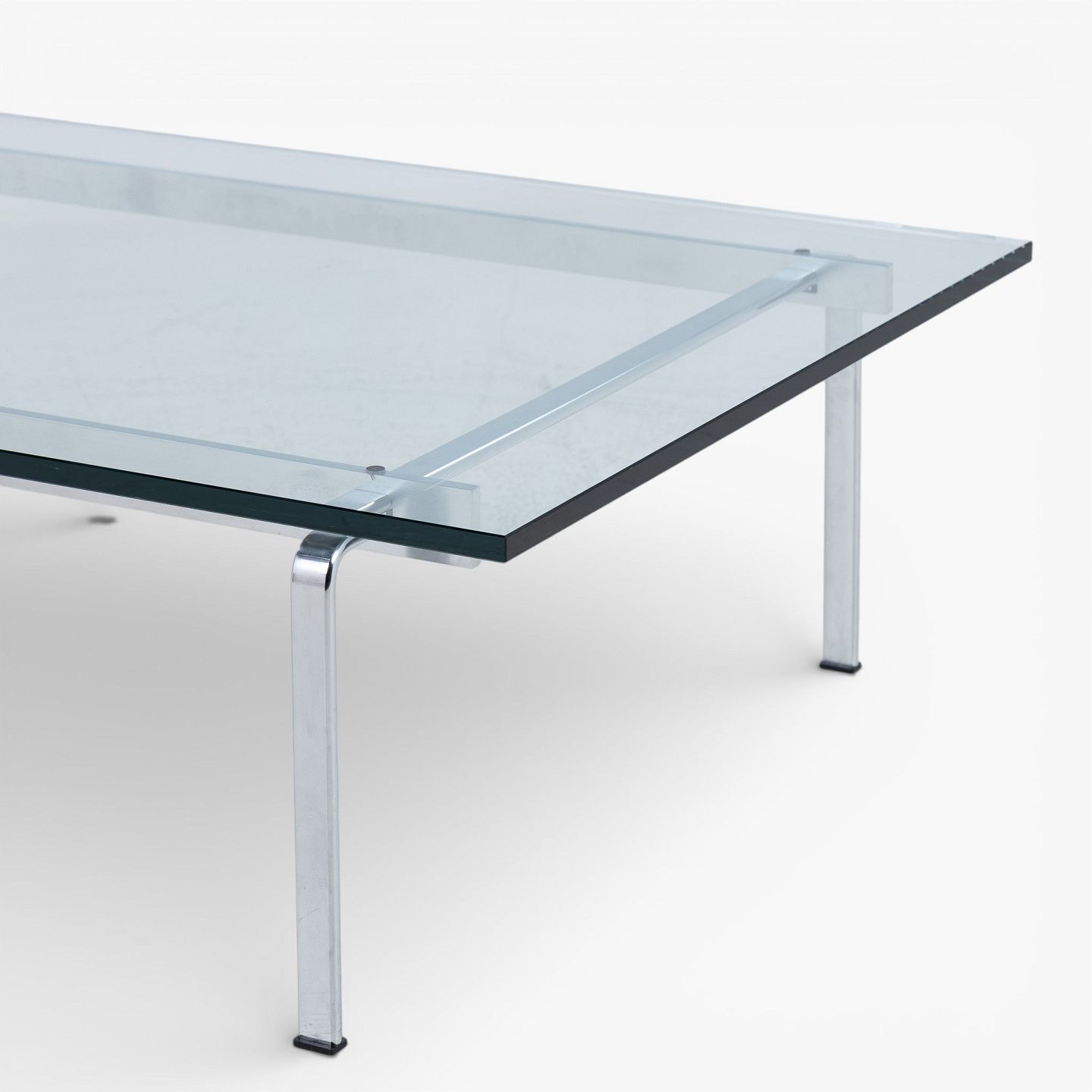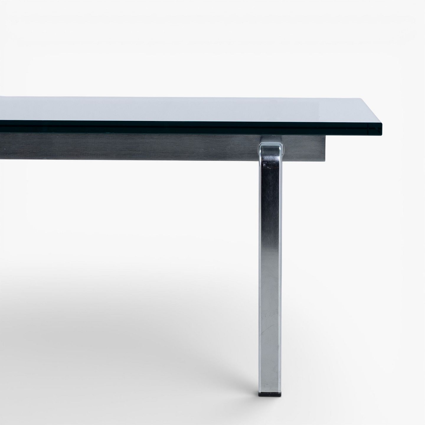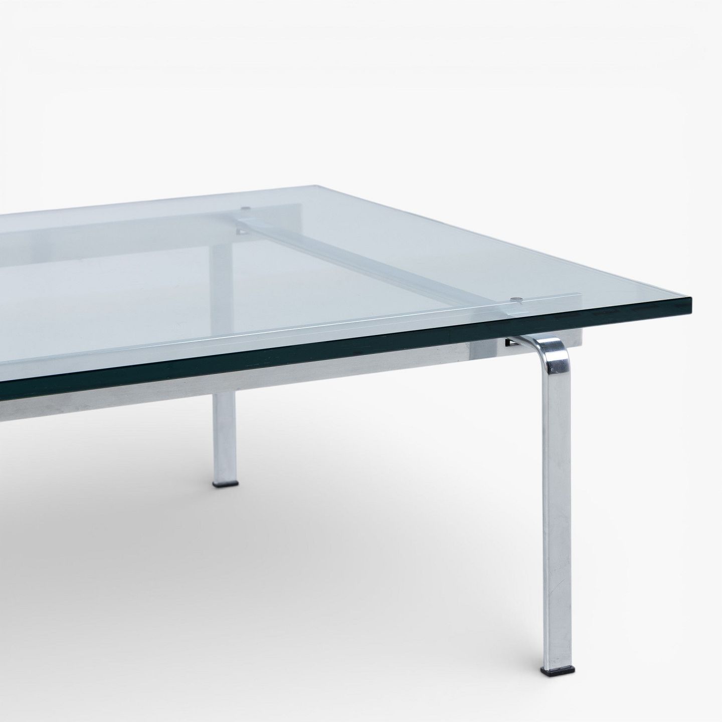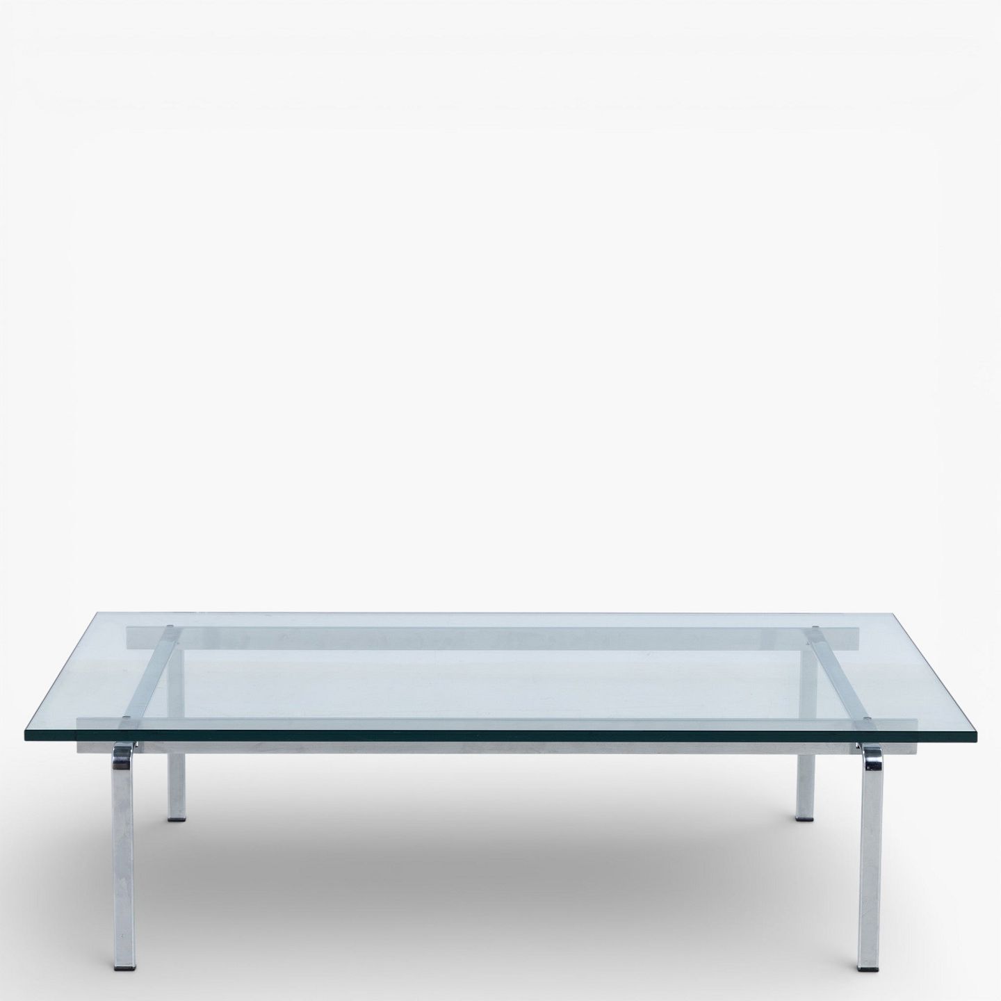 FK 91 - Sofabord med stel i stål og plade i glas.