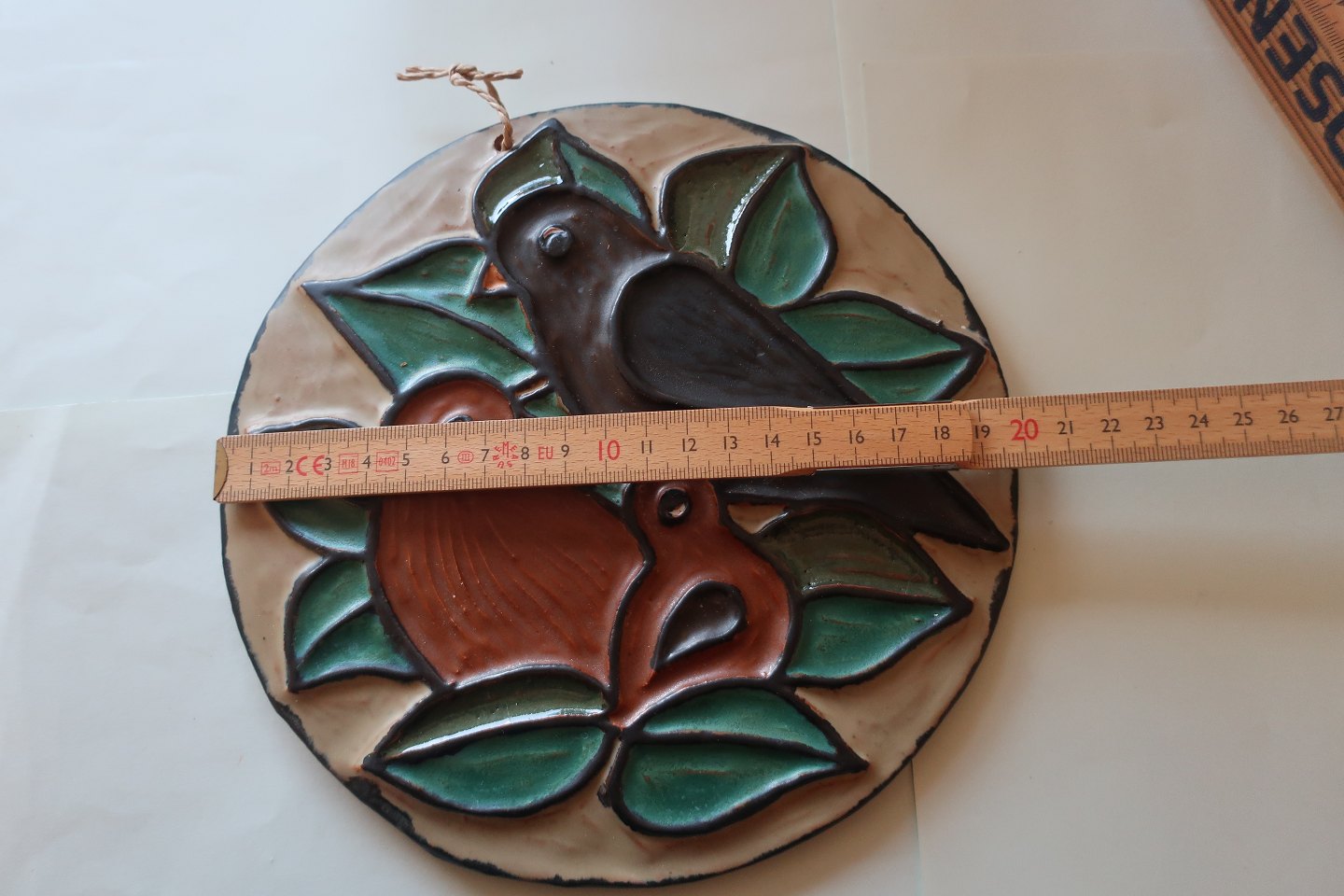 Relief, Keramik af Hildegon, den kendte keramiker fra Als i Sønderjylland, 20 cm, stemplet.