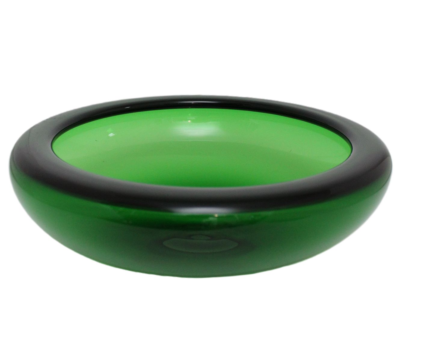 Holmegaard, Provence/Arne skål designet af Per Lütken i 1955. Flad skål i mellemstørrelse, ædelgrønt glas i god stand med enkelte brugsspor og ridser. Signeret Holmegaard PL17792. Højde 7,5 cm. Diameter 26 cm. Pris: 375 kr.