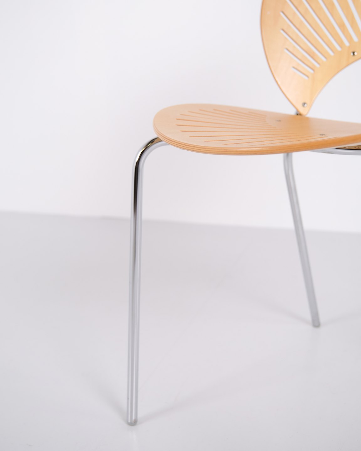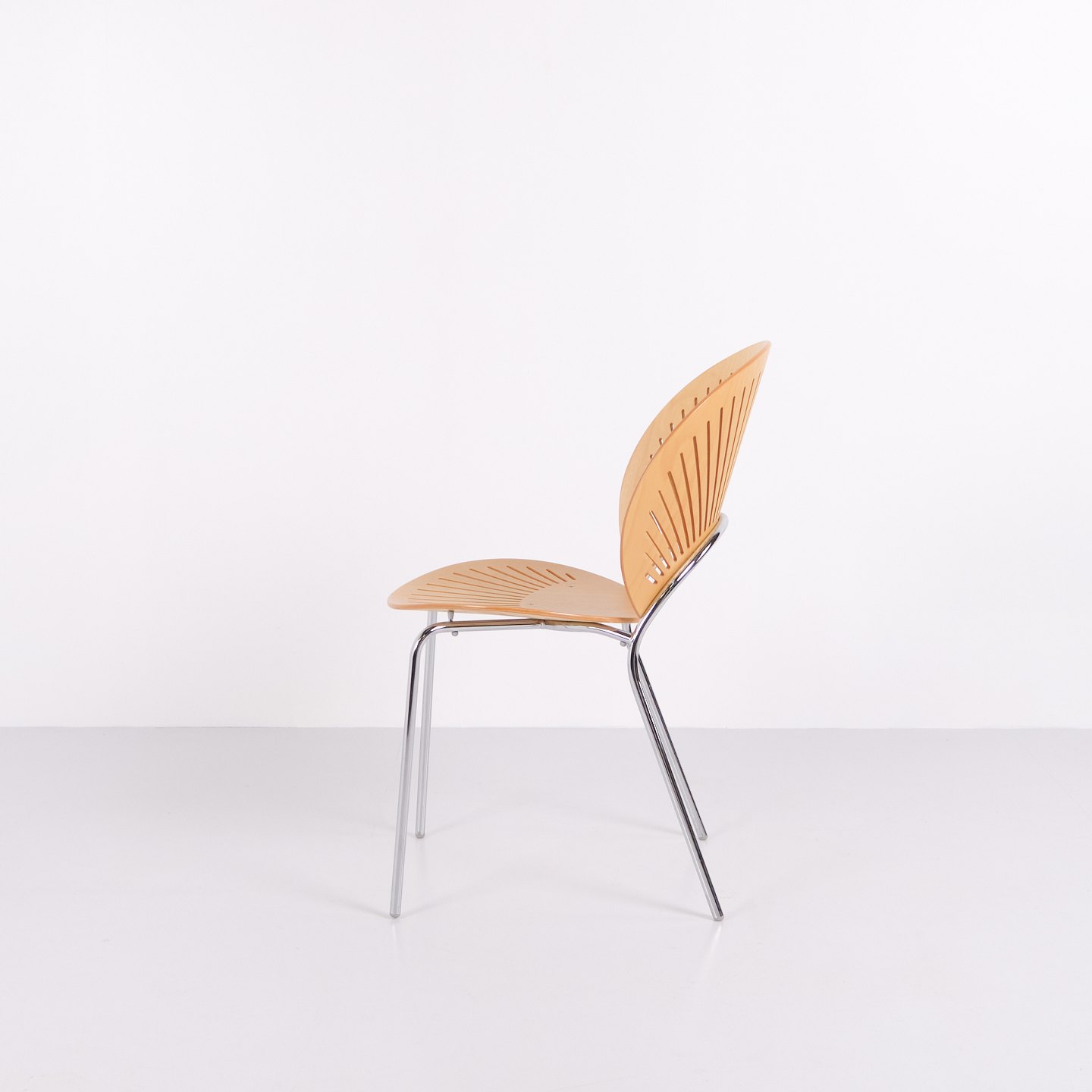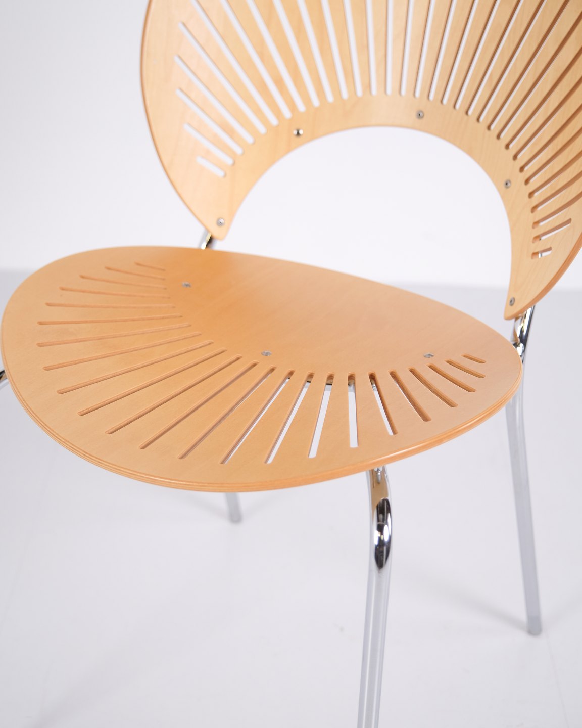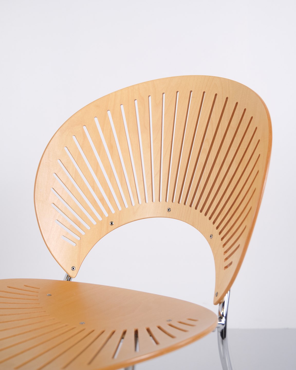 Sæt bestående af fem spisebordsstole, model Trinidad 3398, designet af Nanna Ditzel. Trinidad-stolen er kendt for sin karakteristiske udskårne ryg og blev introduceret i 1990’erne som en del af Nanna Ditzels arbejde med lette, funktionelle stole til moderne indretning. Modellen er anvendt både som spisebords- og konferencestol og indgår i dansk møbeldesign fra slutningen af det 20. århundrede.