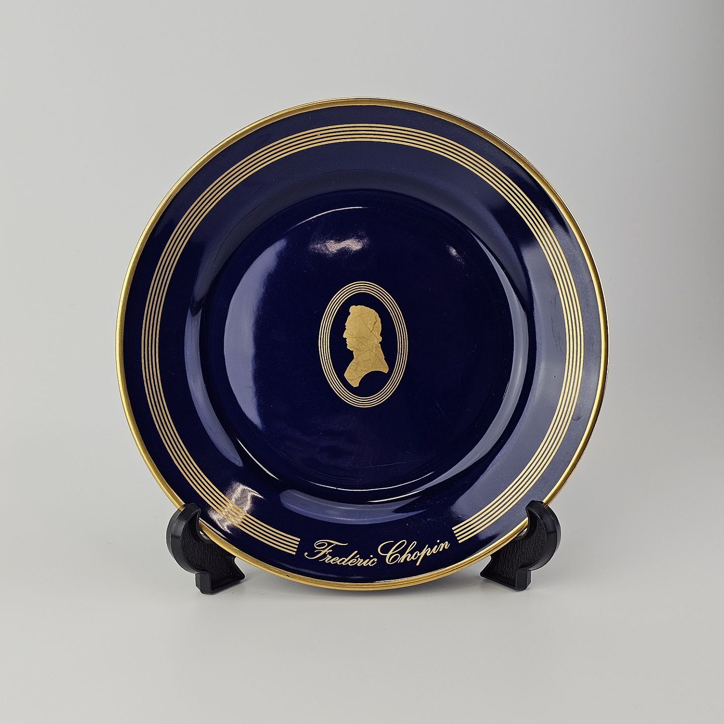 Komponist er blåt porcelæn med dekoration i guld i tema efter komponister
