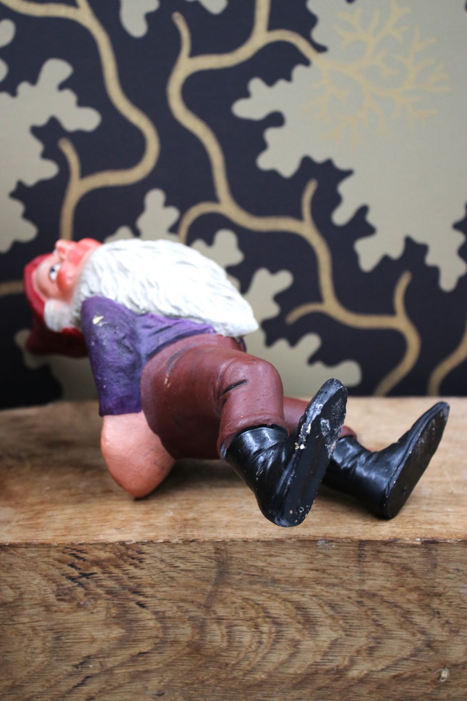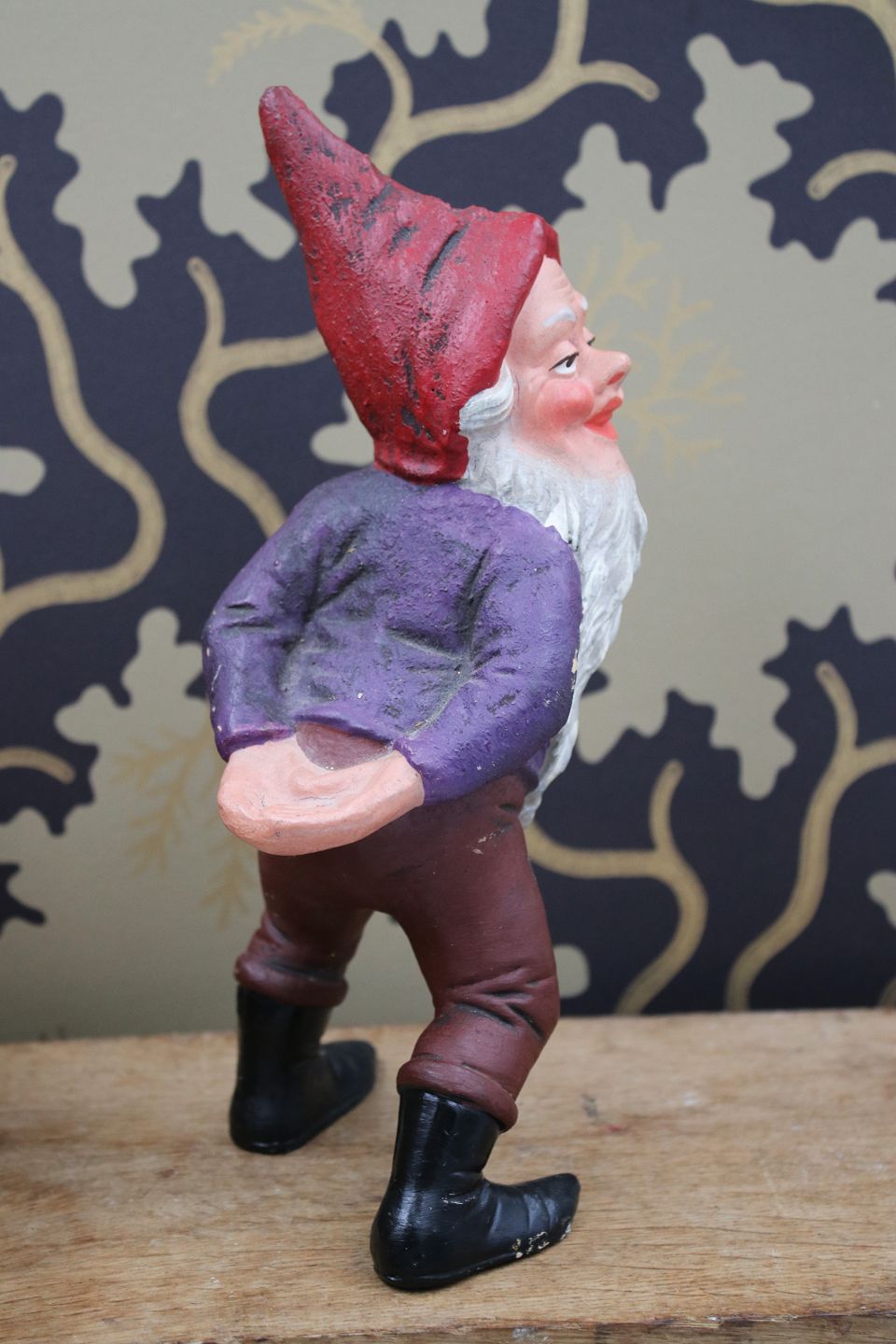 Gammel julenisse i bemalet terrakotta med fin patina.