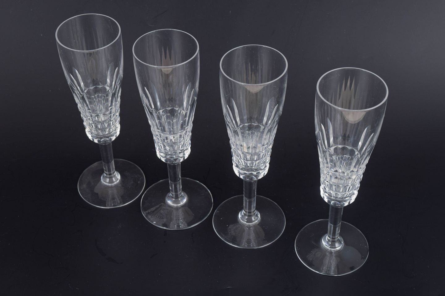 French Crystal, Set of 4 Champagne Glasses.