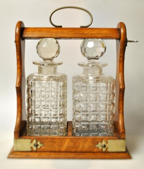 Engelsk tantalus med to krystal karafler, 19. årh.