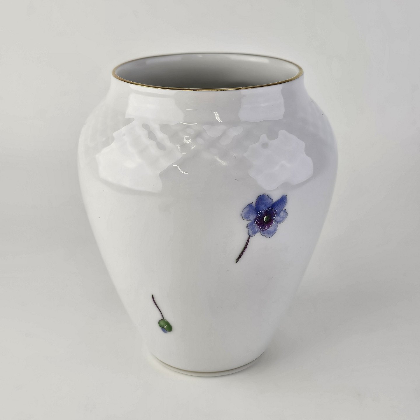 Antonius er af hvidt porcelæn med skælform dekoreret med håndmalede blå anemoner og guldkant. Også kendt under navnet Blå Anemone.