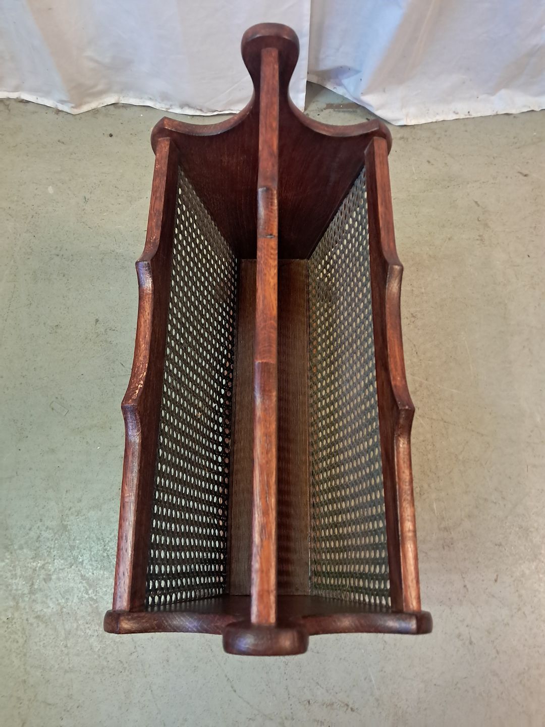 Avisholder i bejdset massivt egetræ med rørflet, fra 1990erne.