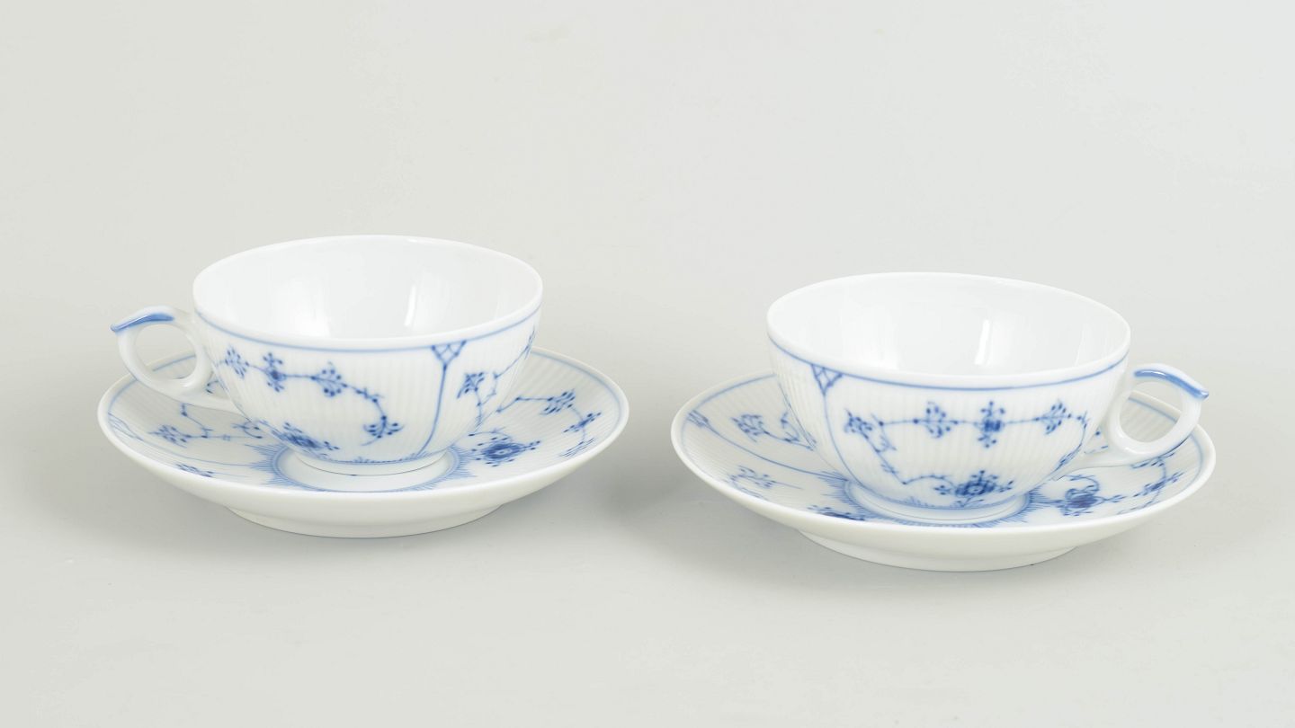 Royal Copenhagen, Musselmalet riflet tekopper med underkopper, sæt på 2.