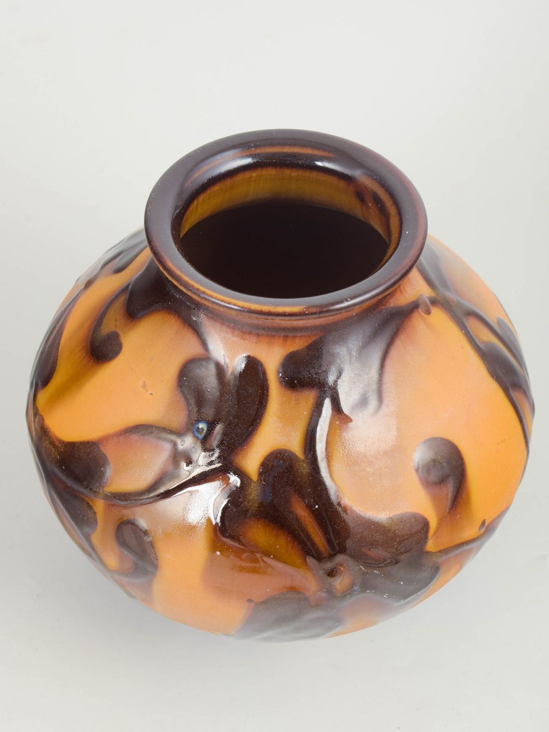 Kähler Keramik in Næstved was one of Denmark’s most innovative ceramic workshops in the first half of the 20th century. During the 1930s, the workshop explored experimental glaze methods, including the so-called cow horn technique, where liquid glazes were applied and shaped using horn or similar tools. This process created dynamic, highly individual surfaces with strong visual depth and variation. Such pieces reflect the era’s emphasis on artistic craftsmanship and are today regarded as some of the most sought-after examples of Kähler’s ceramic production.