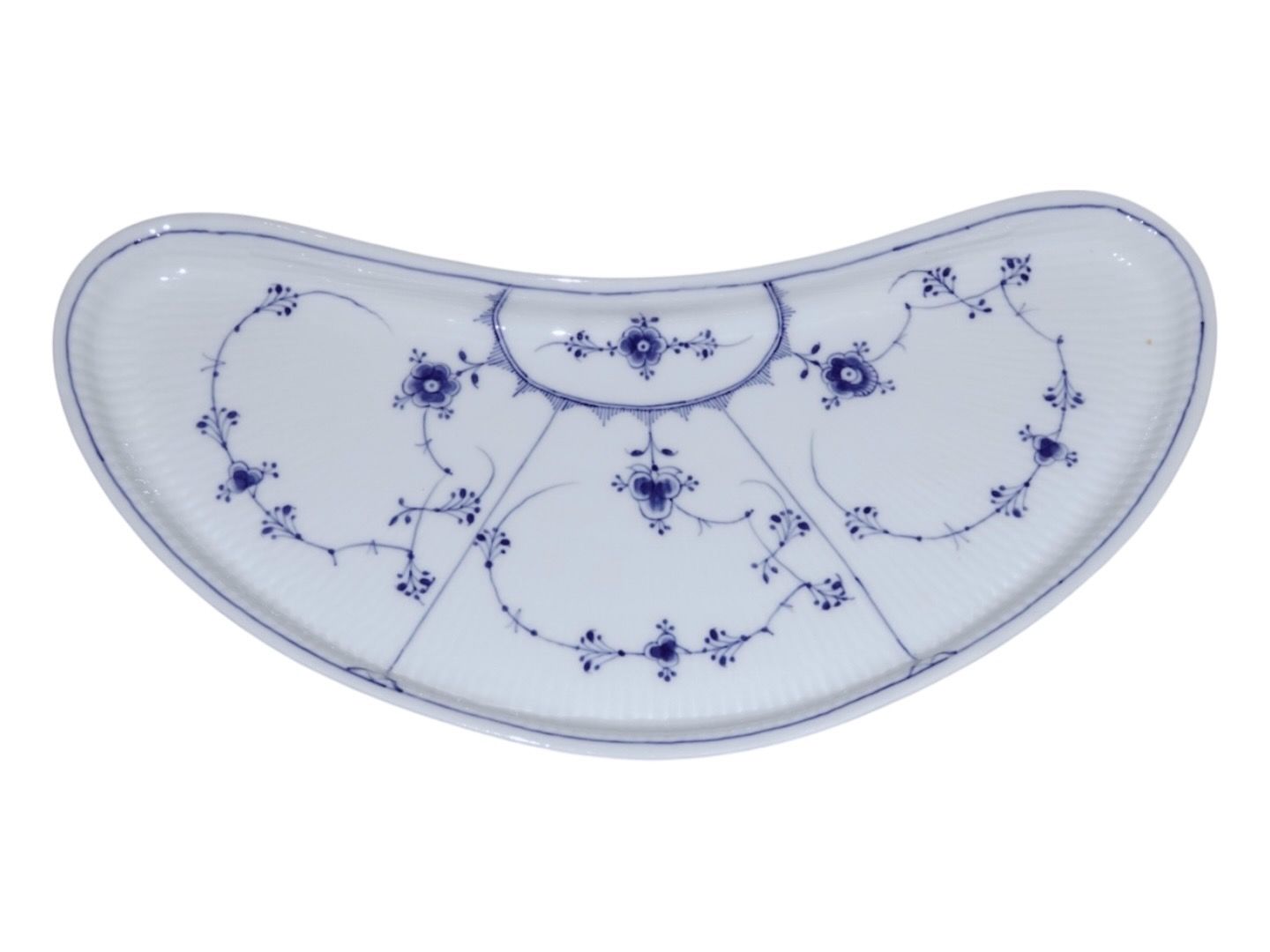 Royal Copenhagen Musselmalet Riflet, stort og meget sjældent måneformet anretterfad.
