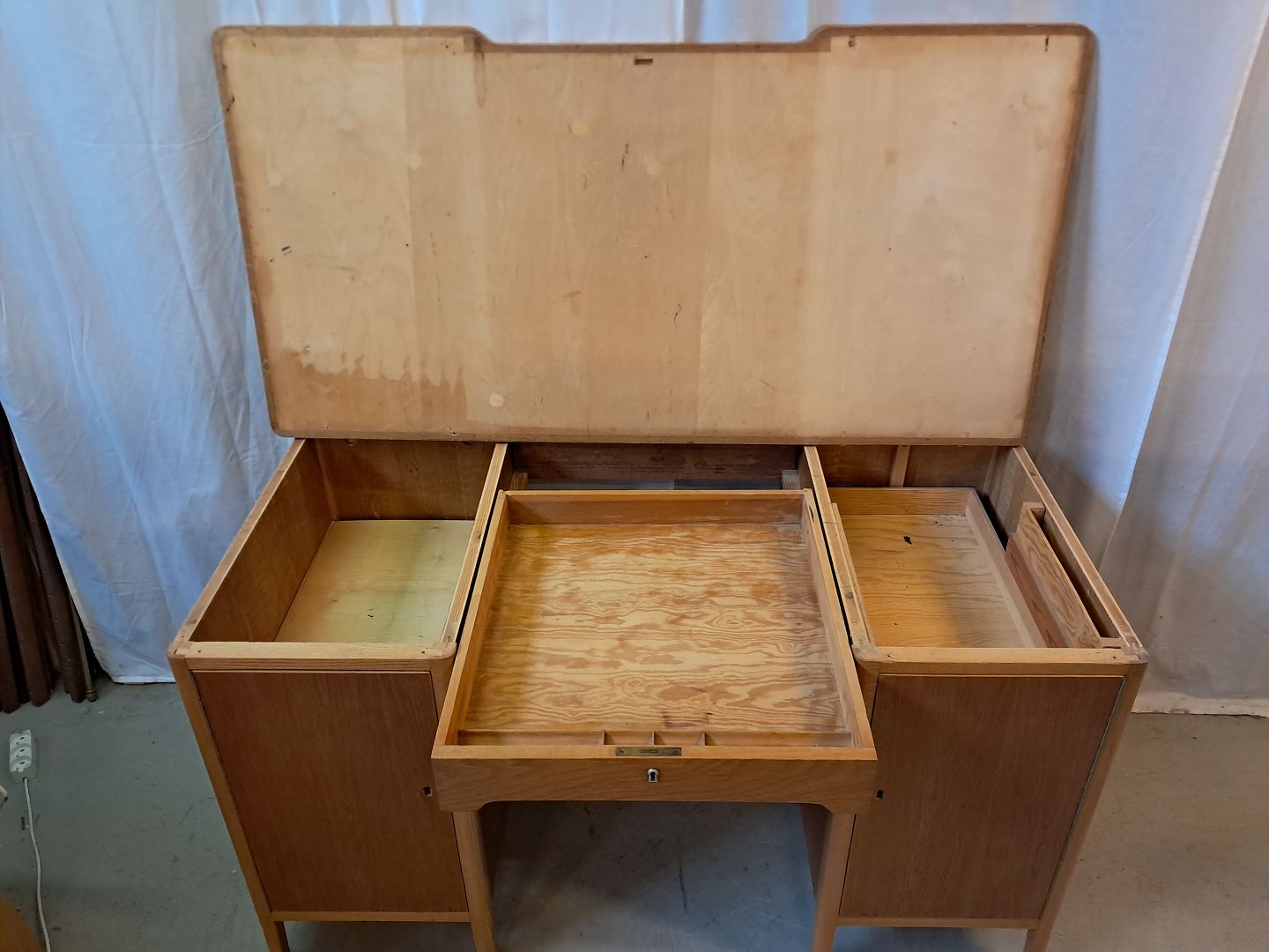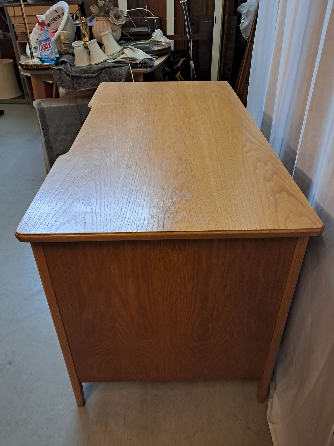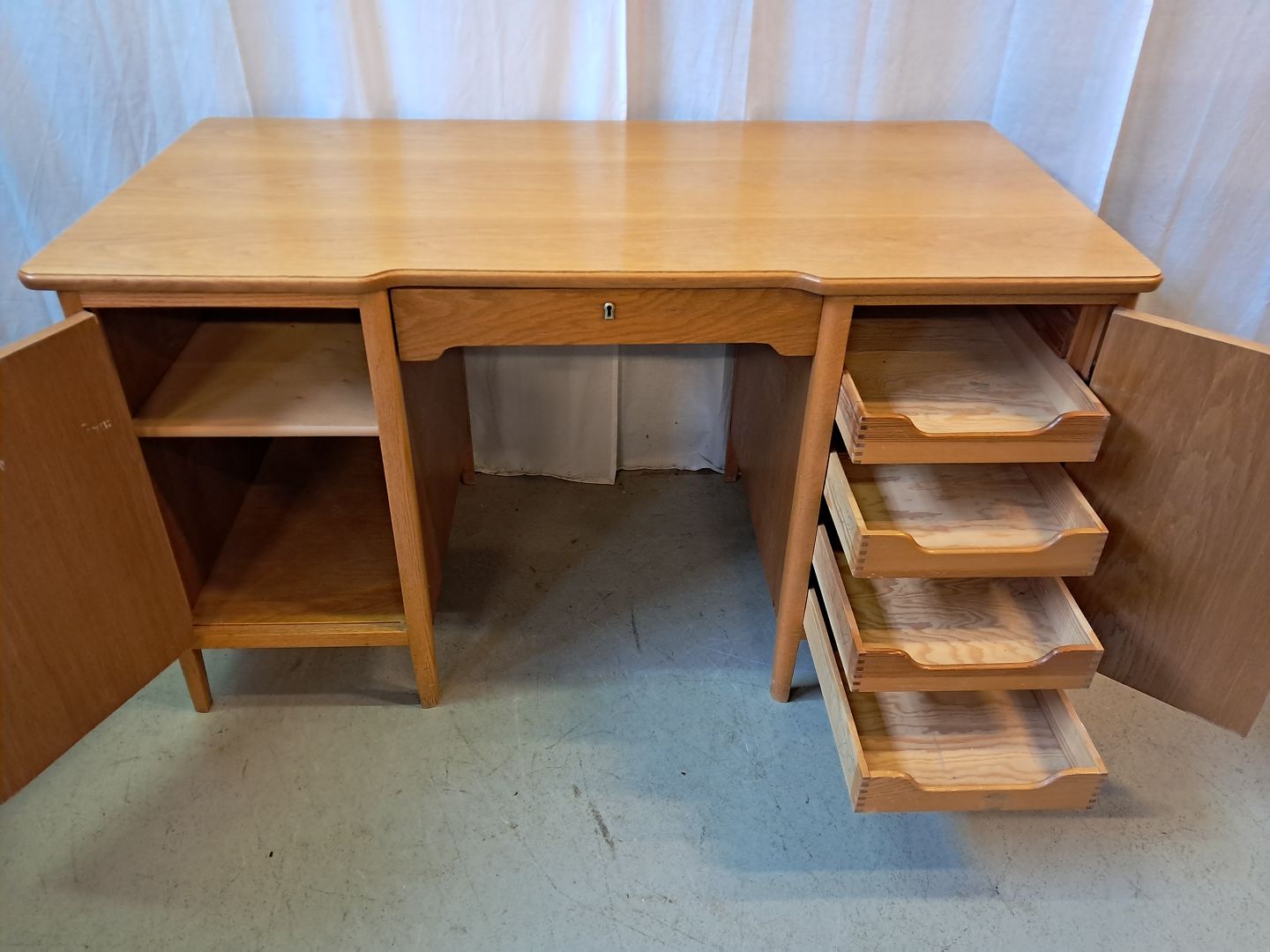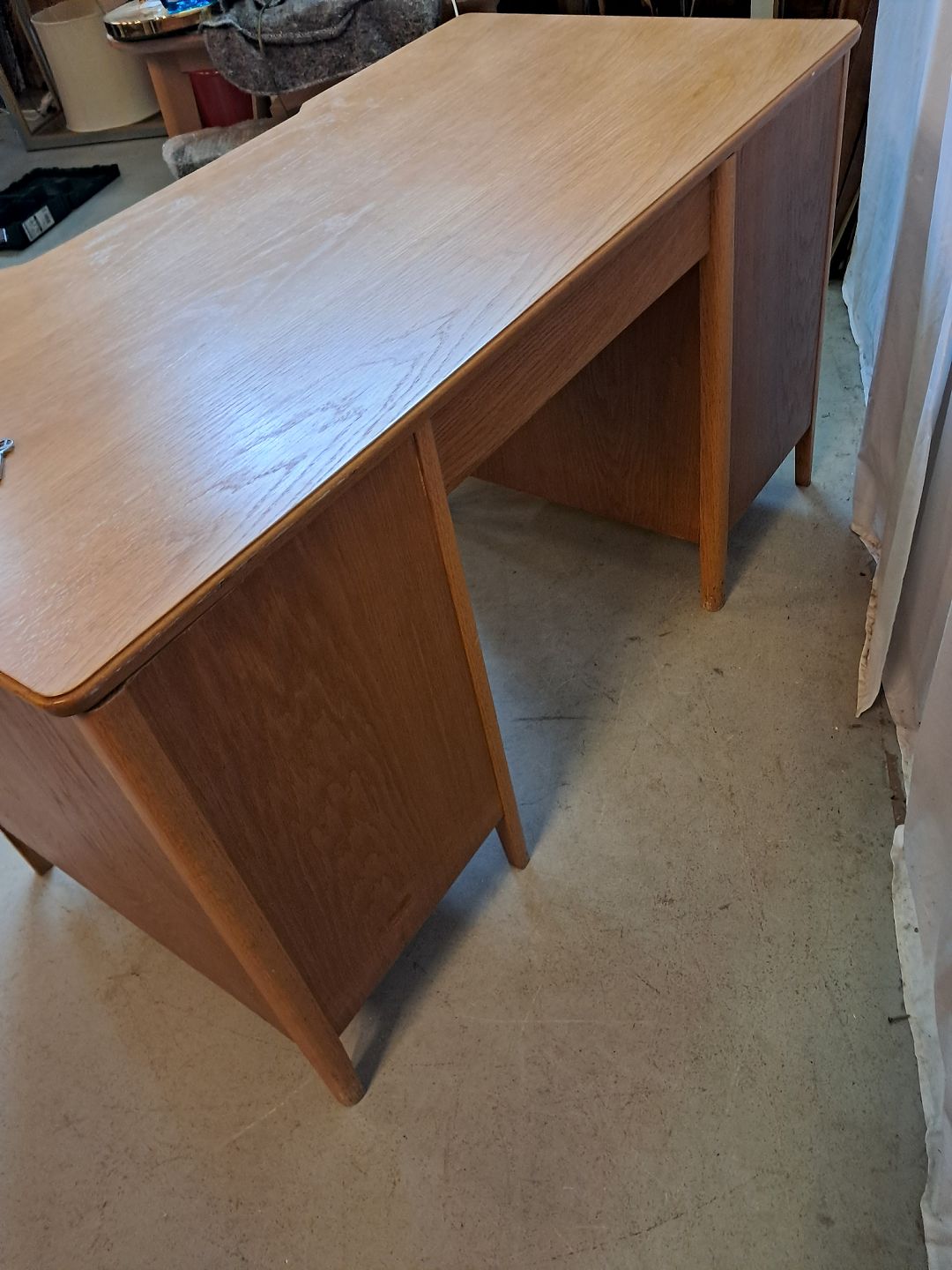 Skrivebord i fineret egetræ, fra 1950erne.