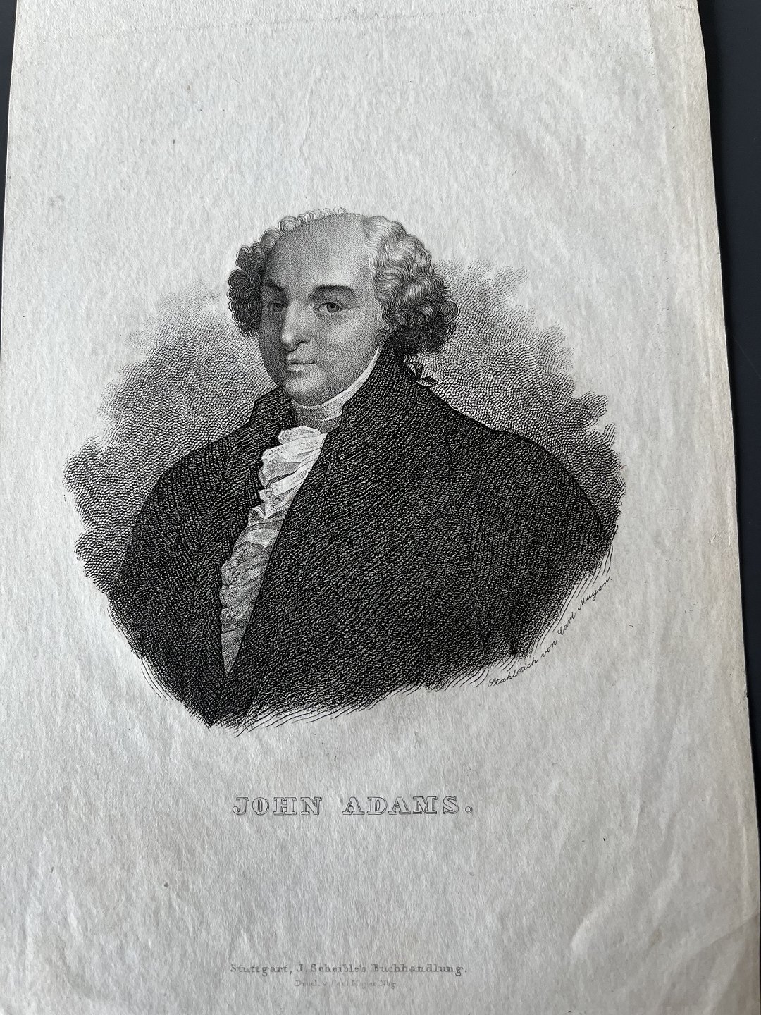 Stålstik af Carl Mayer - Portræt af den anden Præsident i USA John Adams.