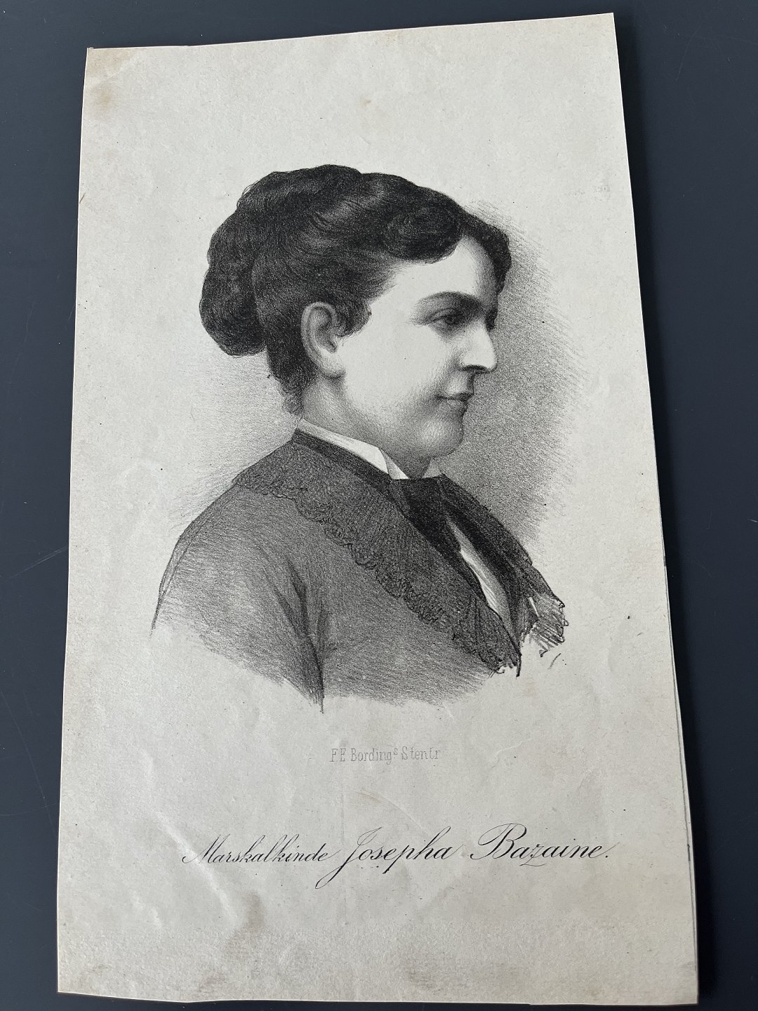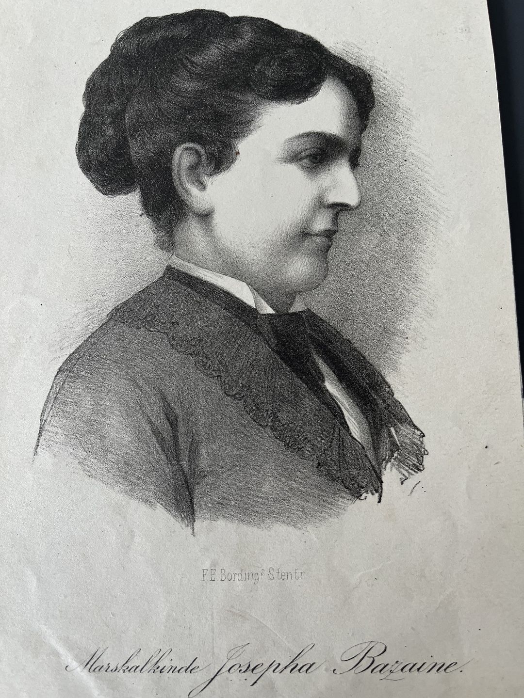 Litografi af F.E. Bording - Portræt af Marskalinde Josepha "Pepita" Bazaine 1874,
