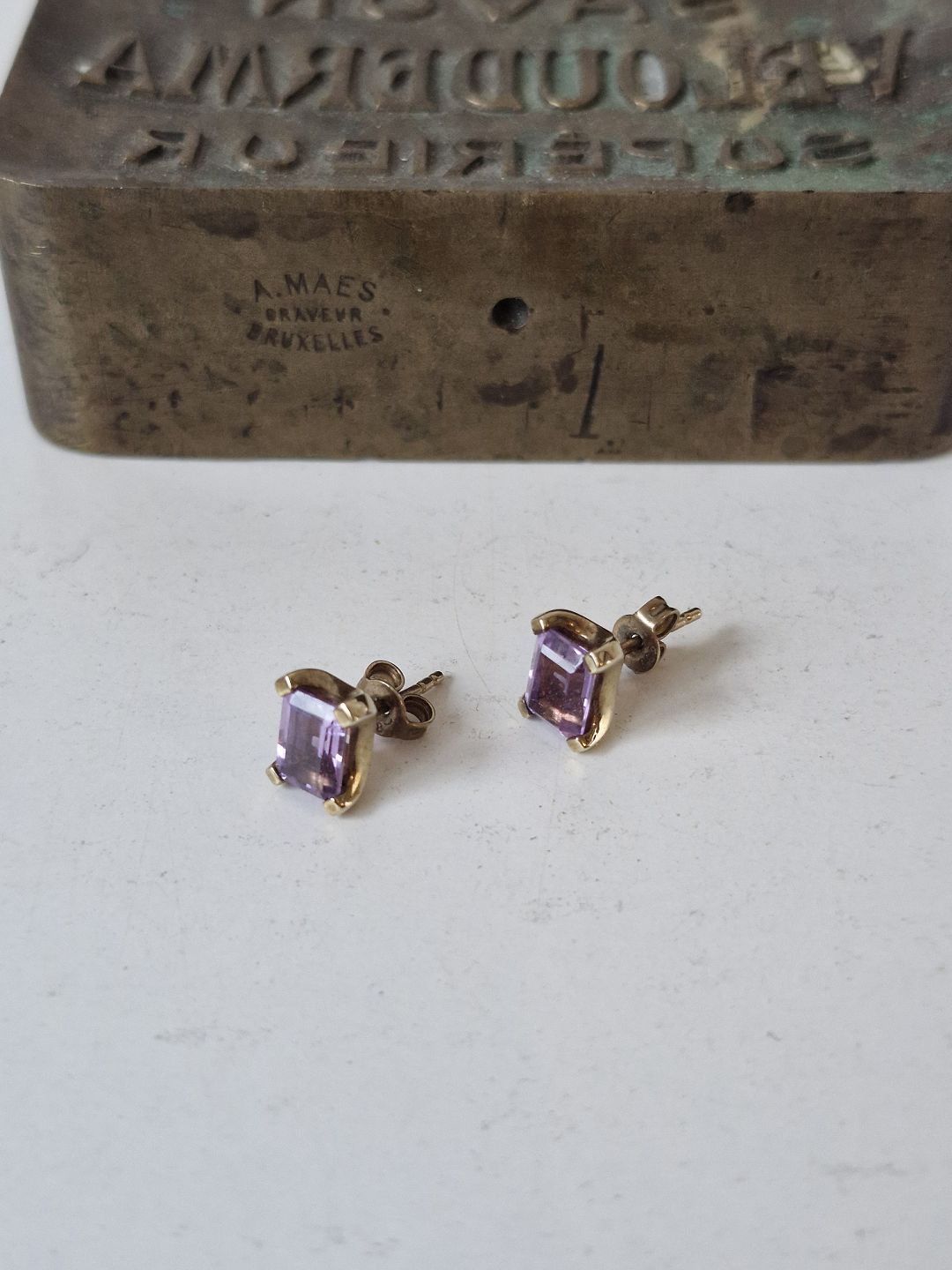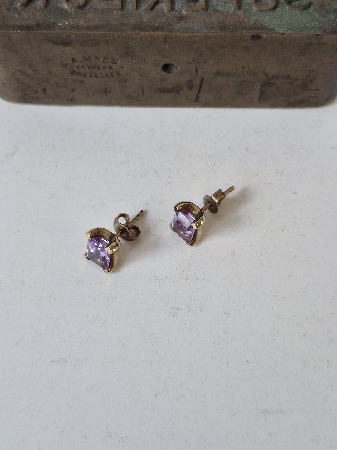 Vintage ametyst ørestikker i 8 kt guld