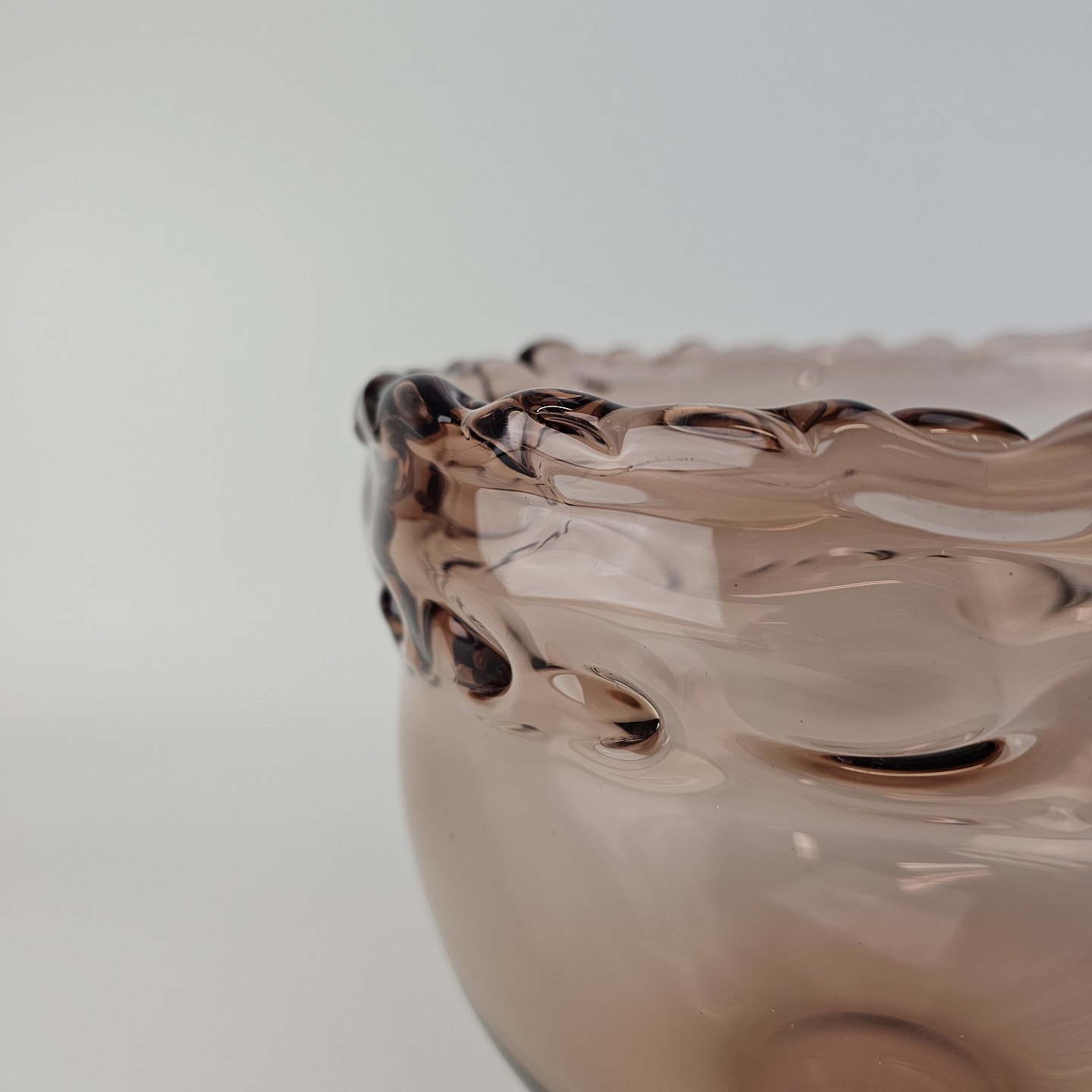 Skål i rosafarvet glas med bølget kant fra serien Rosamund