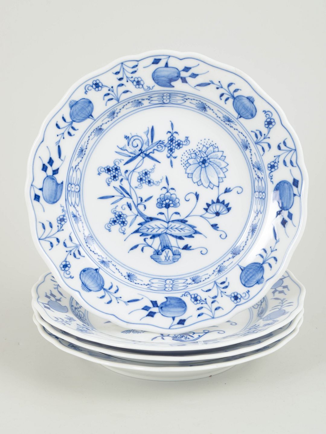 Meissen, Blå løgmønster, sæt på fire tallerkener.