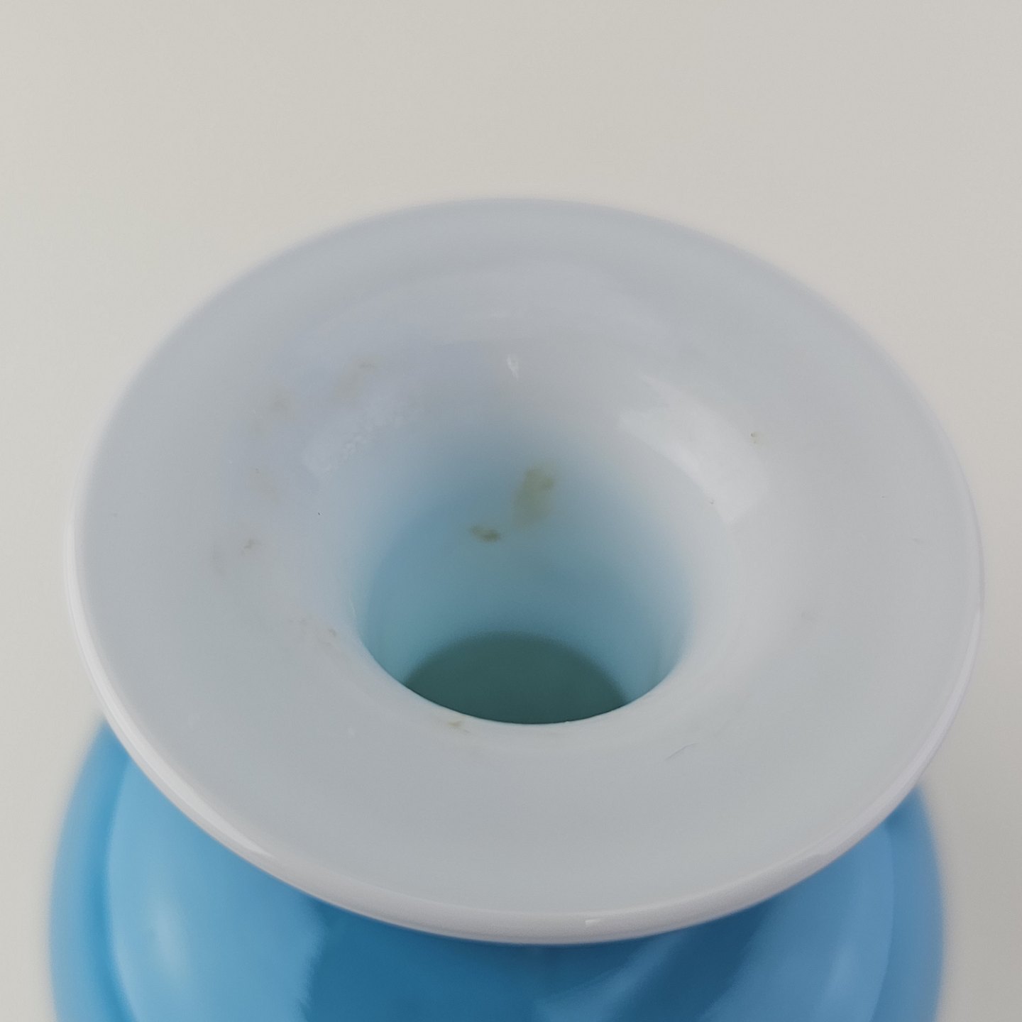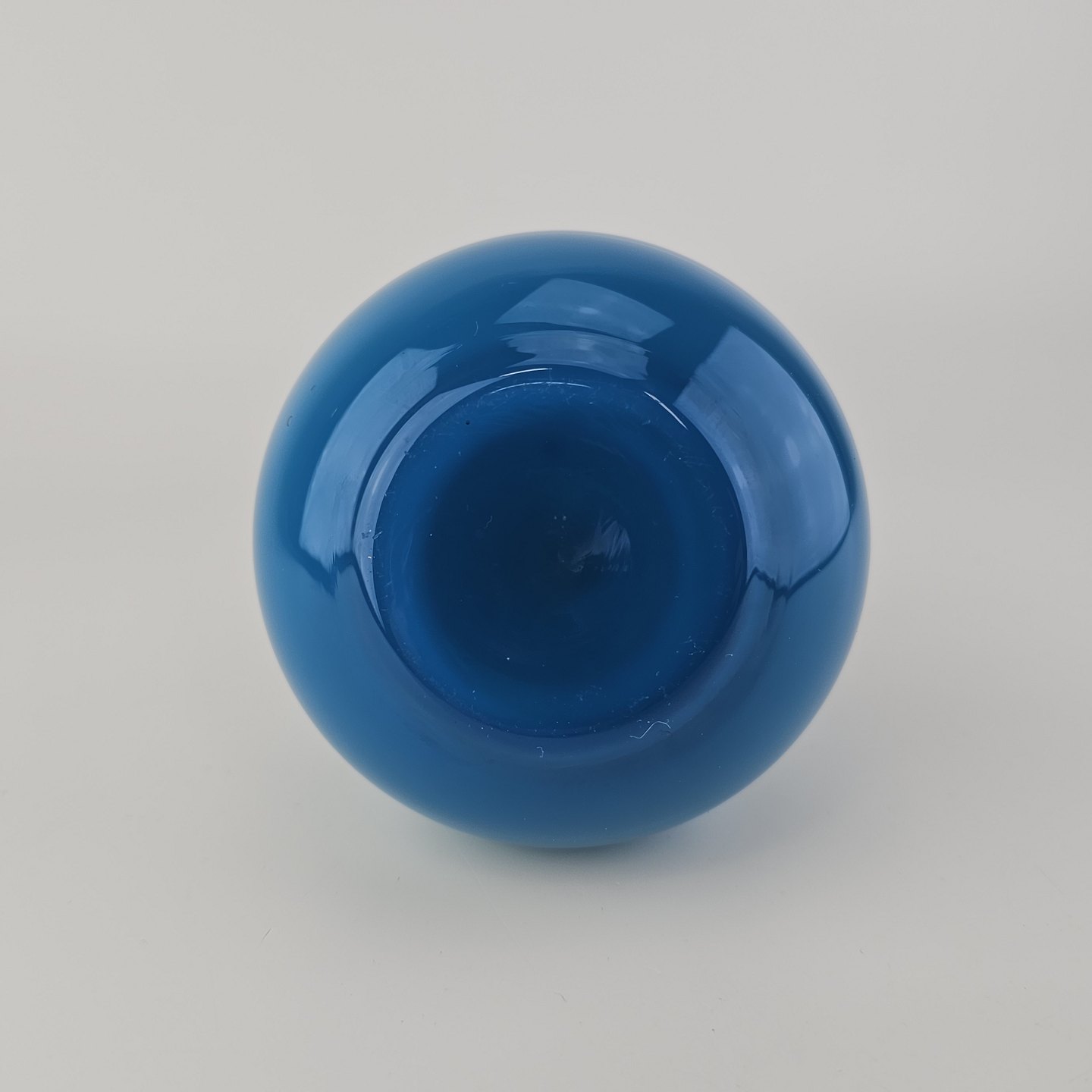 Kugleformet Napoli glasvase i blåt opalglas med hvid inderside